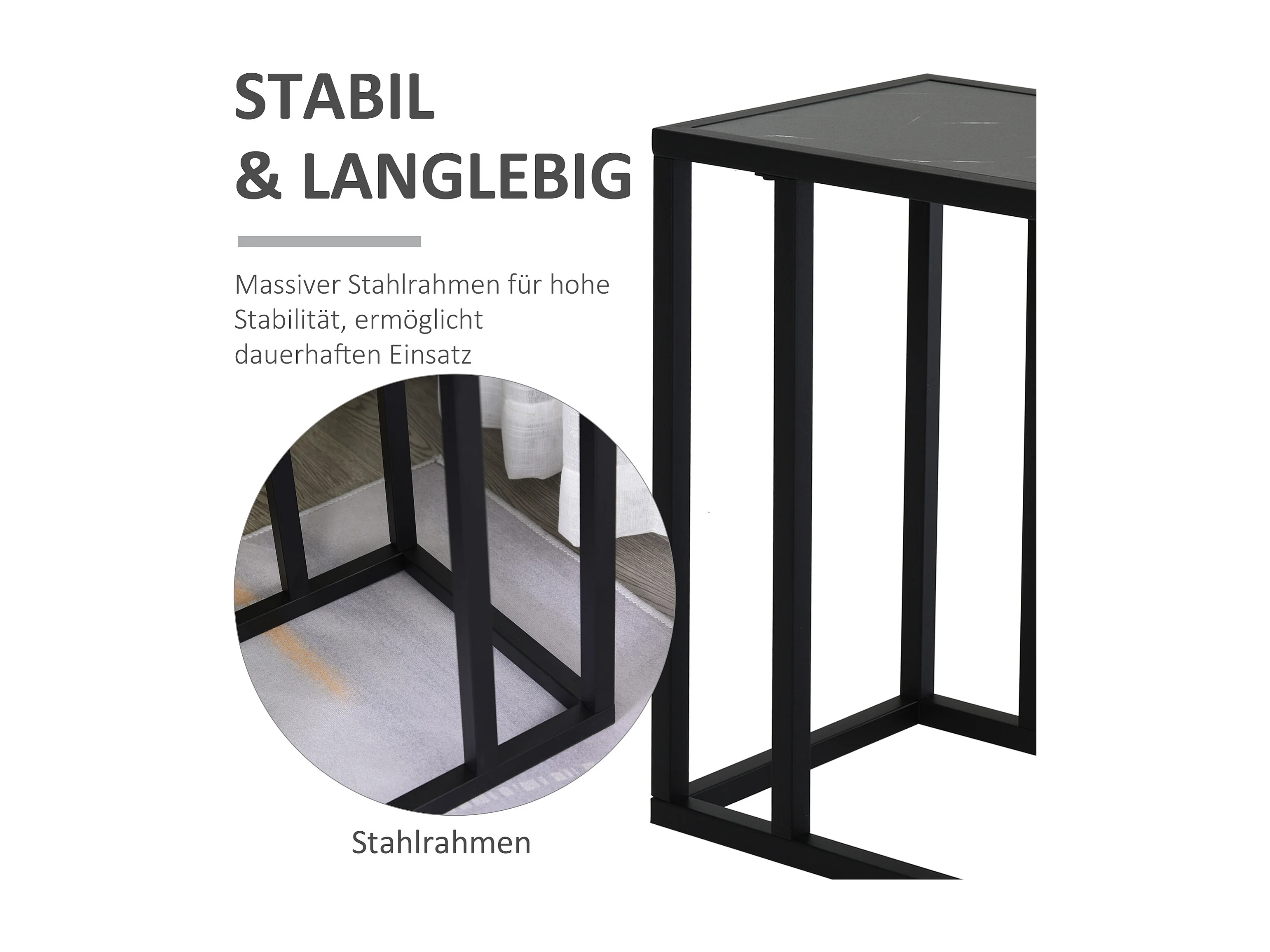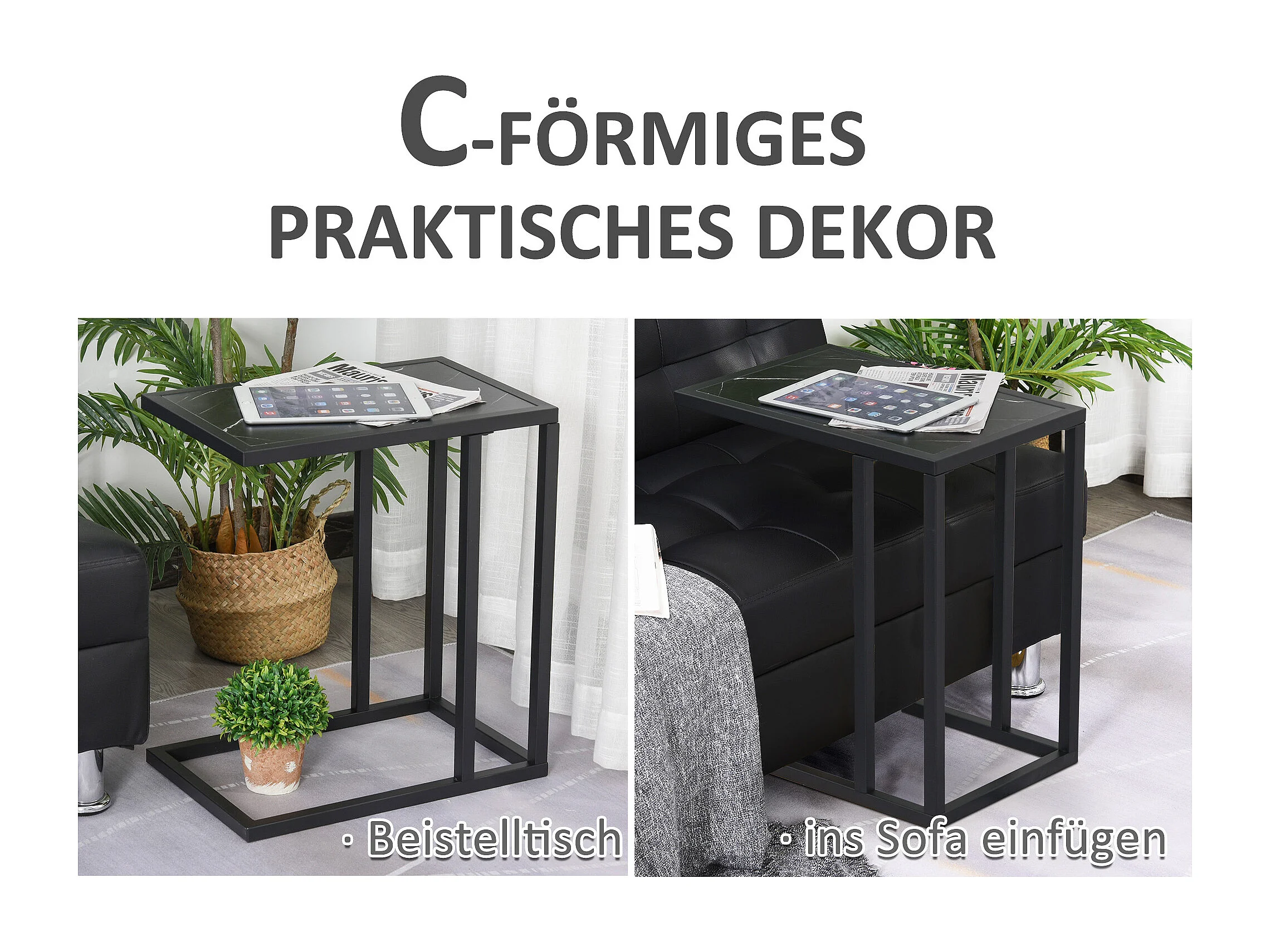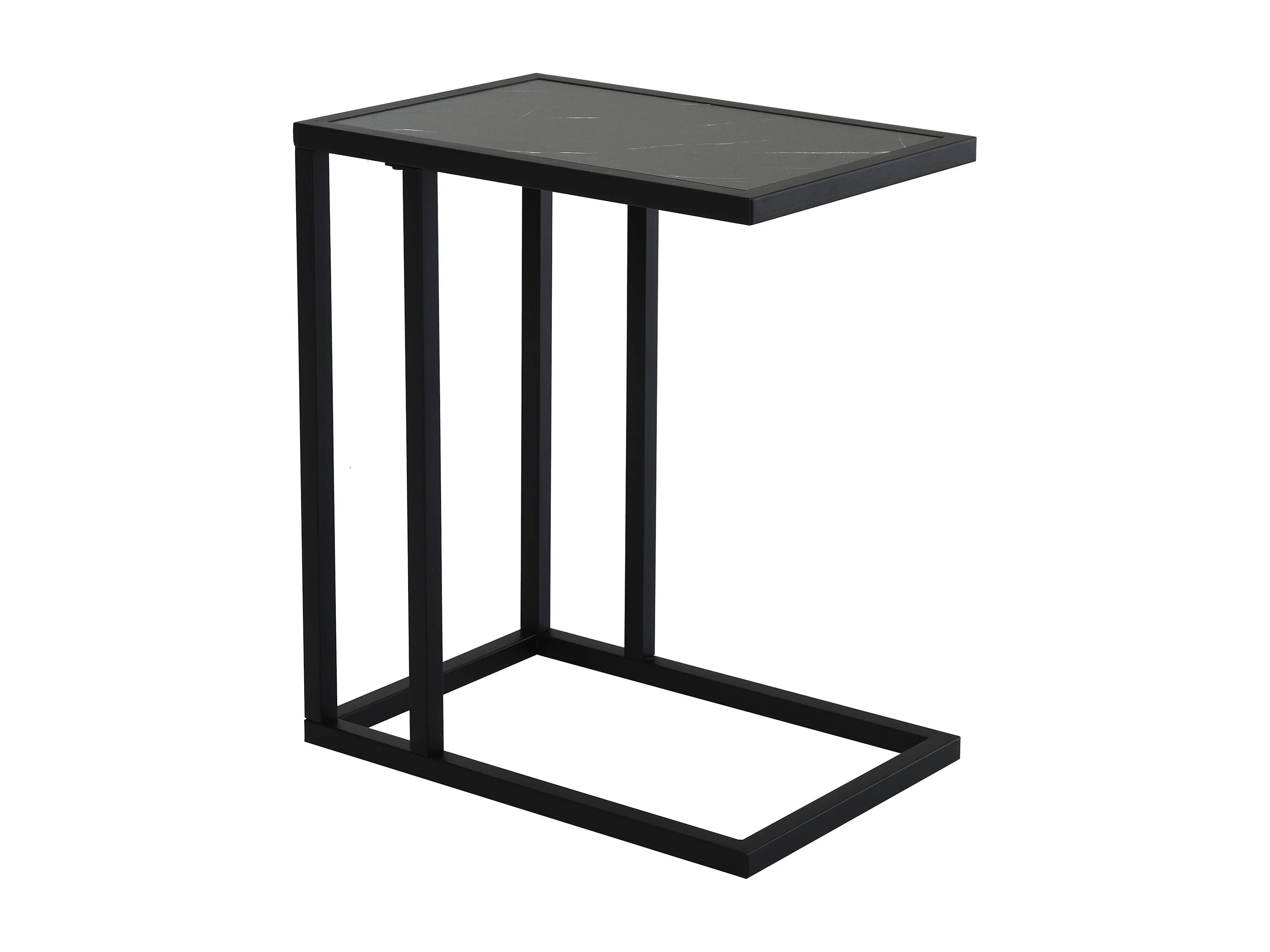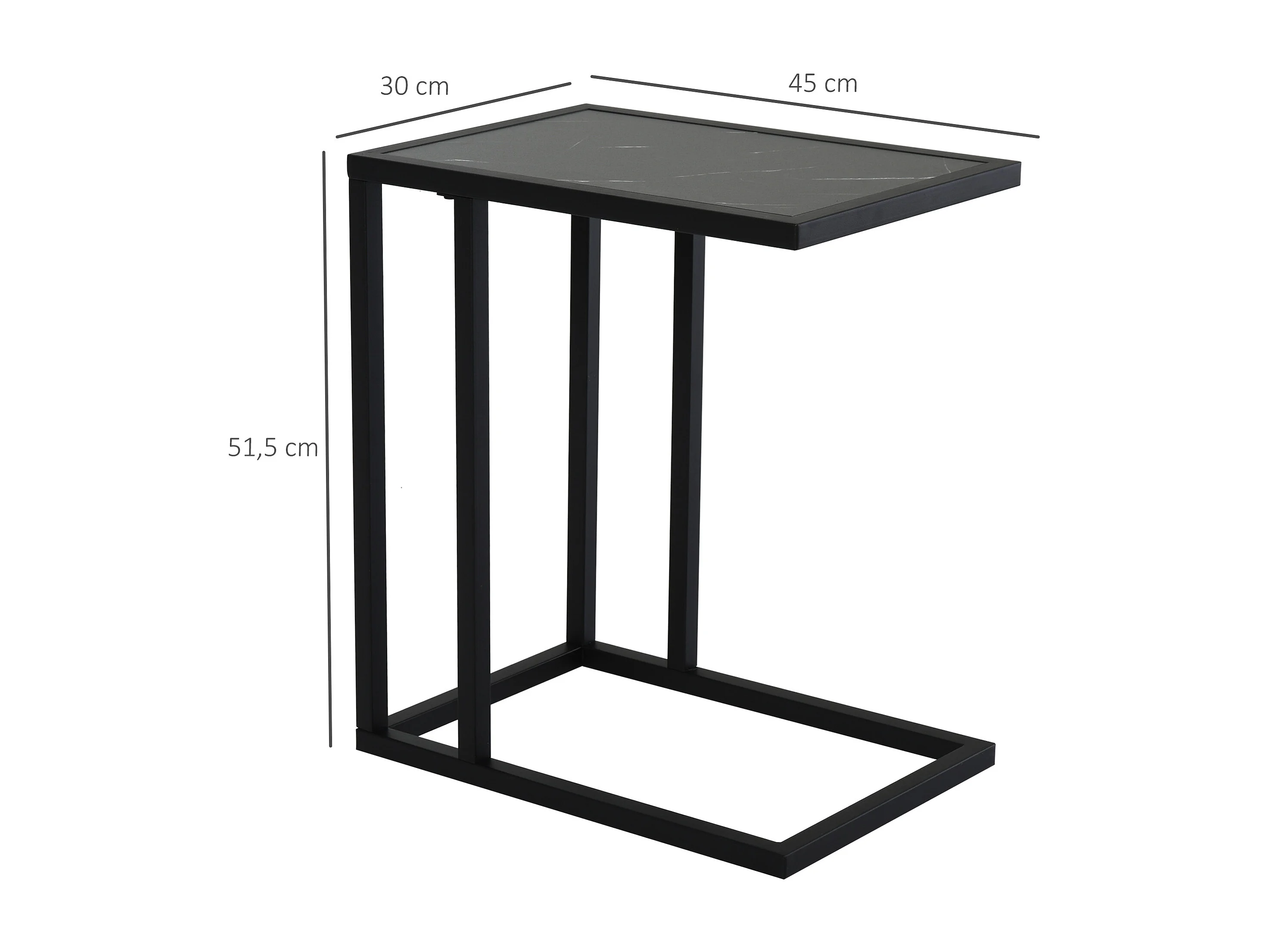 Mesa auxiliar de diseño, tapa imitación mármol, estructura de metal negro, para salón y dormitorio (45x30x51,5cm)
