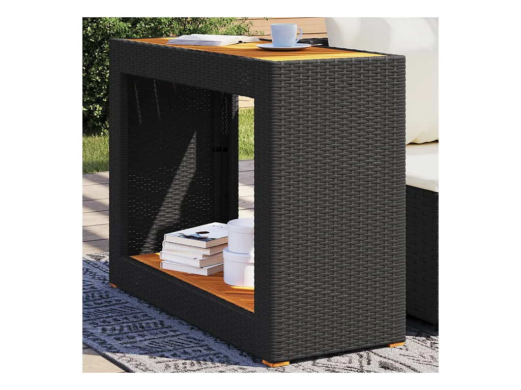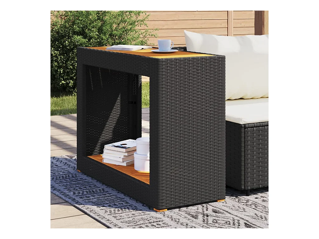 Mesa de jardín negra 80 x 40 x 45,5 cm ratán sintético