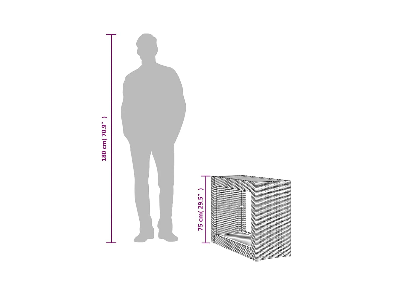 Mesa de jardín negra 100x50x75 cm resina tejida