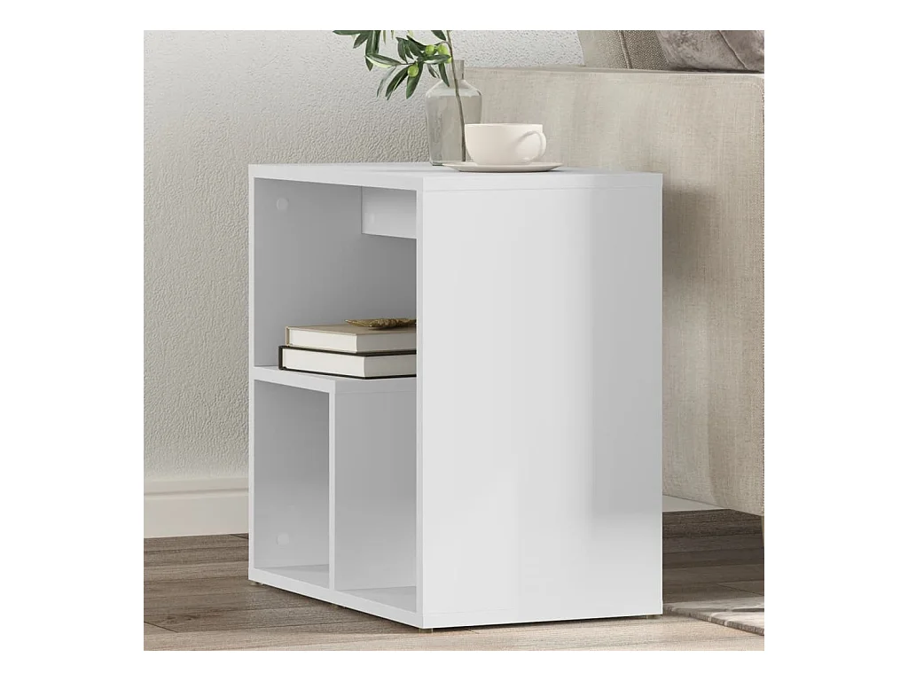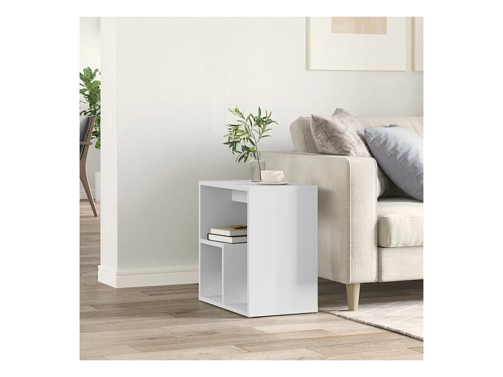 Mesa auxiliar de madera contrachapada blanco brillo 50x46x50 cm