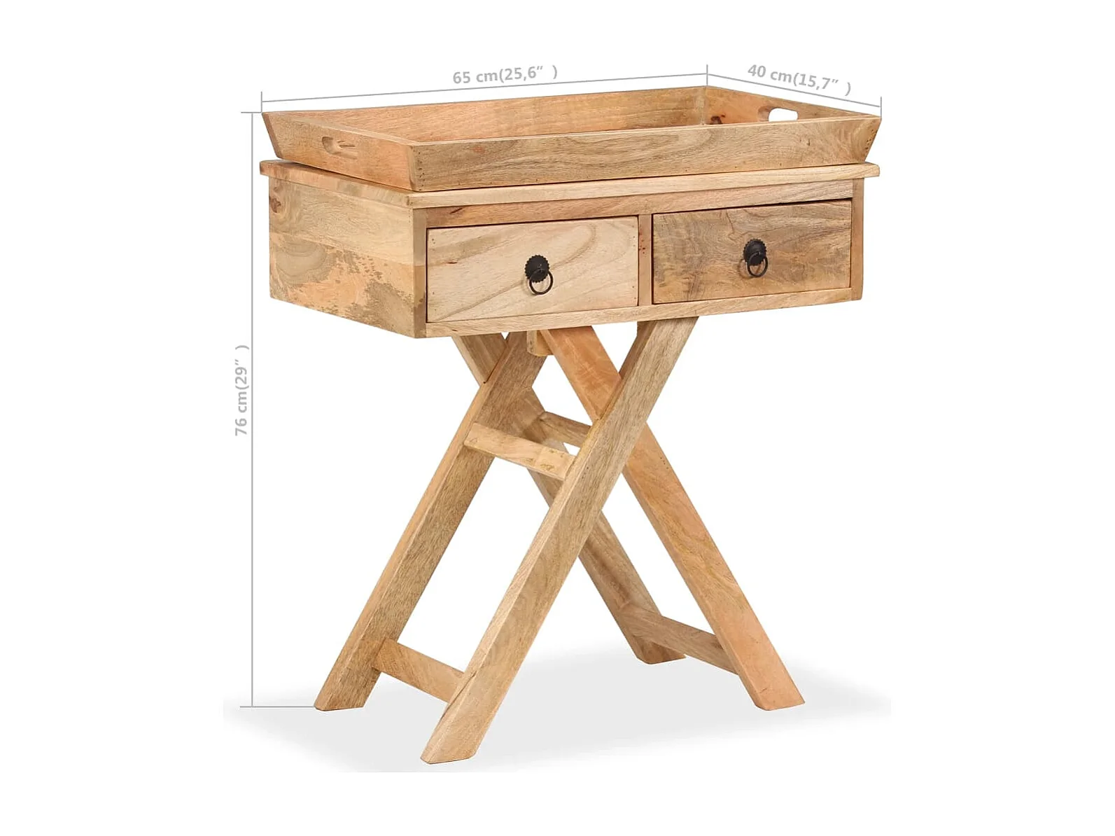 Mesa auxiliar de madera maciza de mango 65x40x76 cm