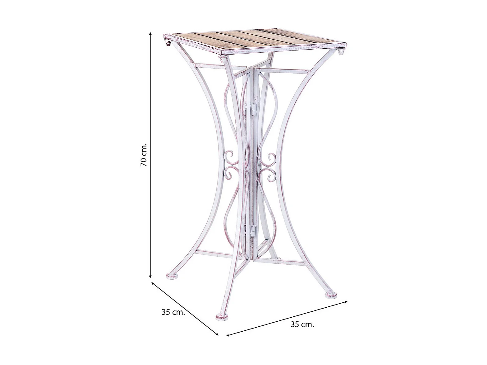 Mesa de hierro forjado y madera marrón, 60x60x70h cm