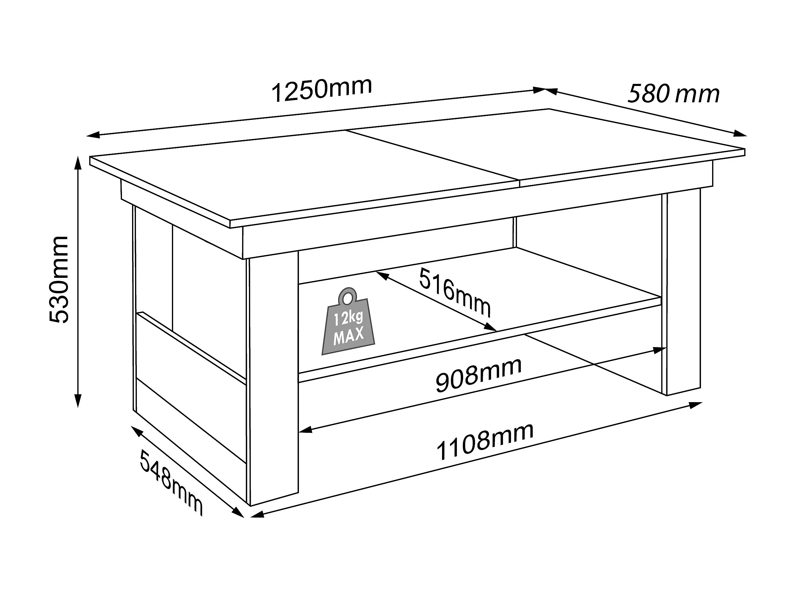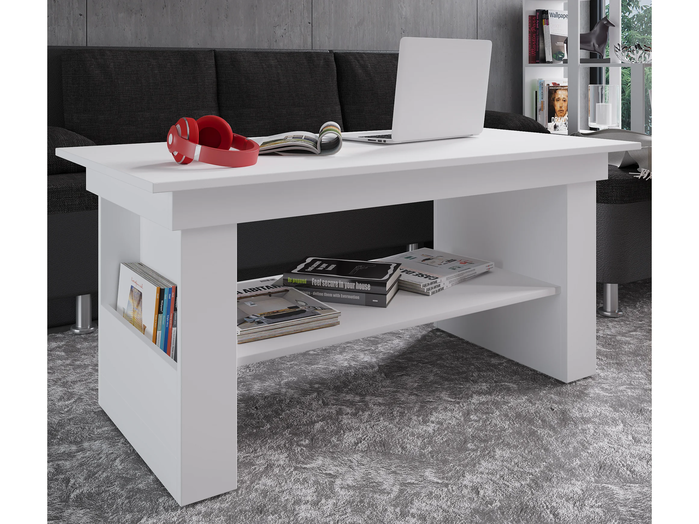 Mesa auxiliar y mesa de centro Dalus Blanco AL. 41 x AN. 90 x P. 53 cm