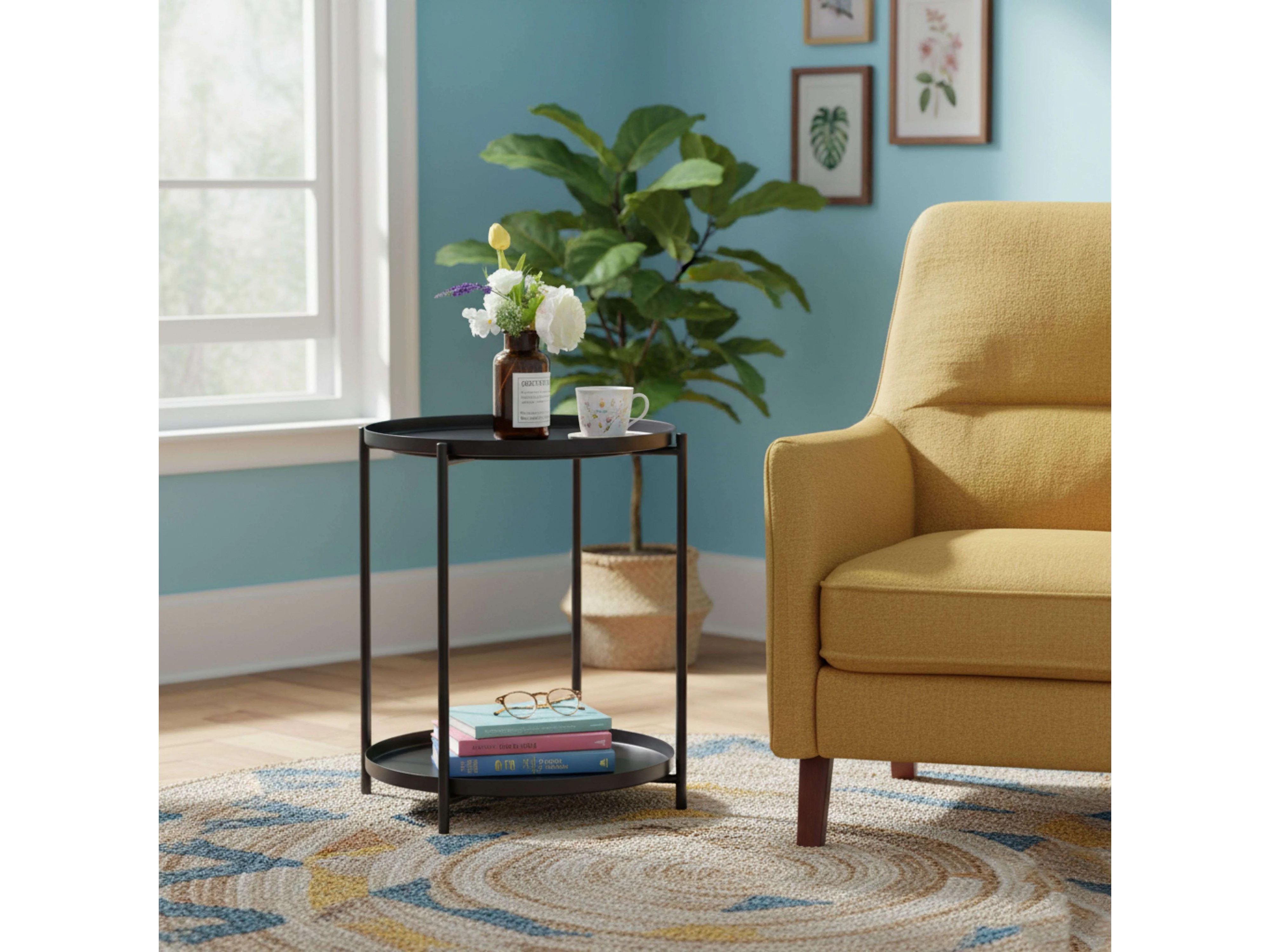 Mesa de Café Redonda de Diseño "Sohan" 48cm Negra de Hierro