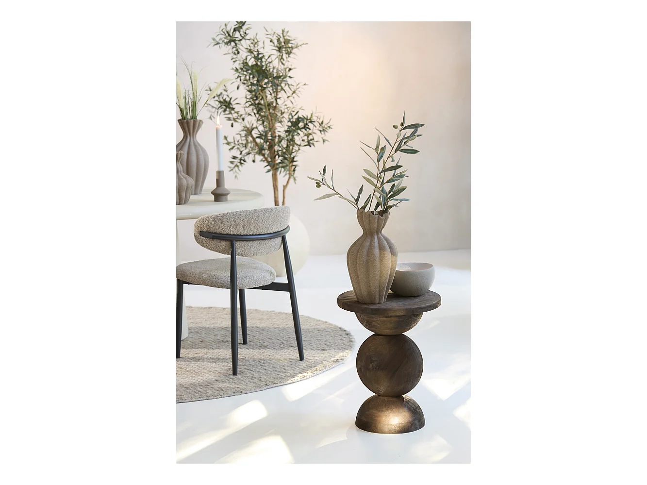 Mesa auxiliar redonda de madera de mango claro - Palak