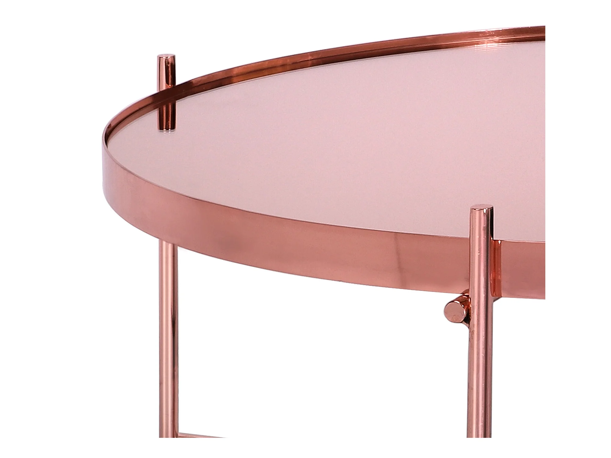 WOMO-DESIGN Mesa auxiliar lateral Tucson Ø75x35cm mesita de centro redonda de cristal y metal color cobre para salón sofá, estilo ligero y aireado