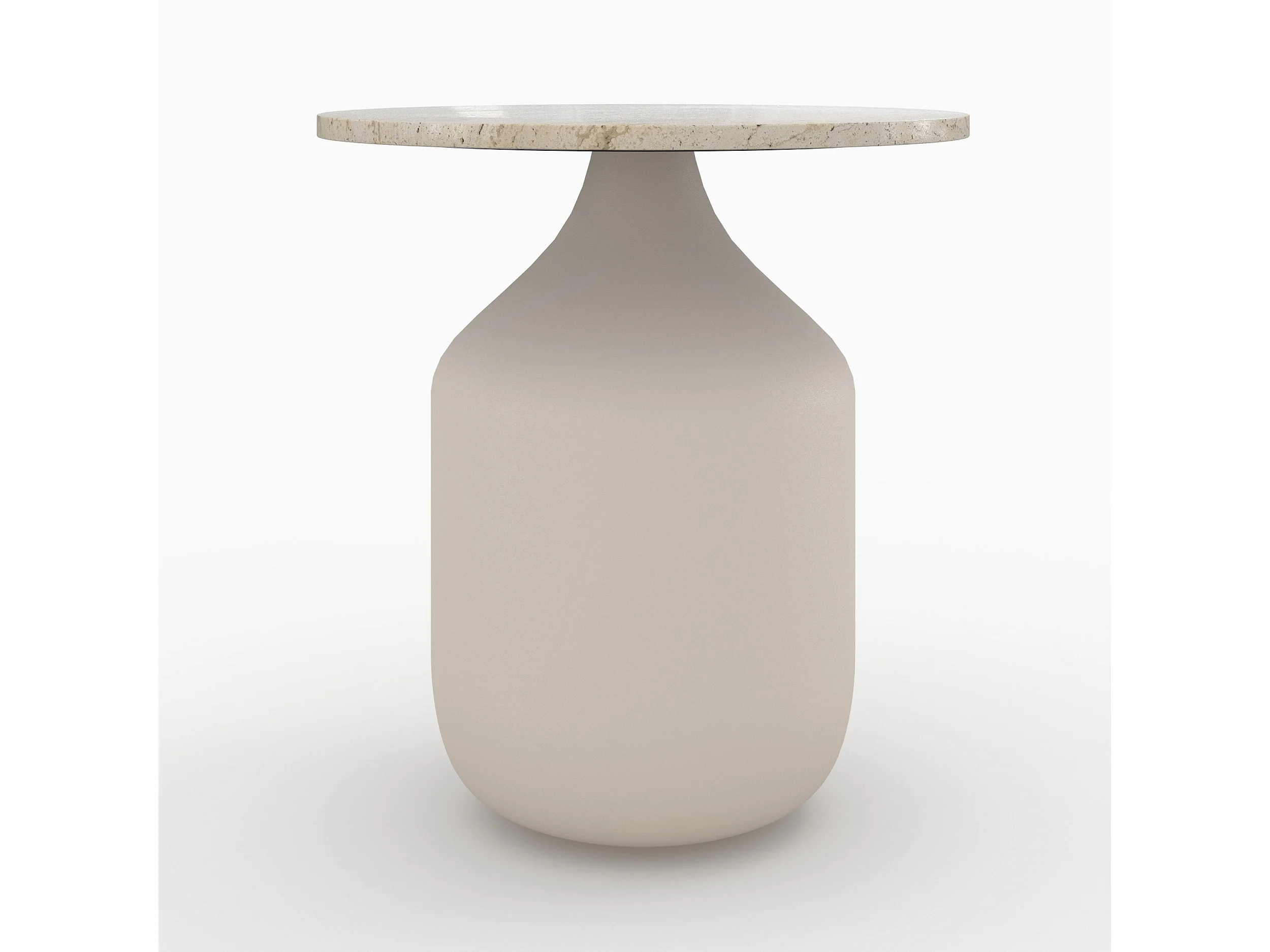 Mesa auxiliar redonda de travertino y metal beige - Louison