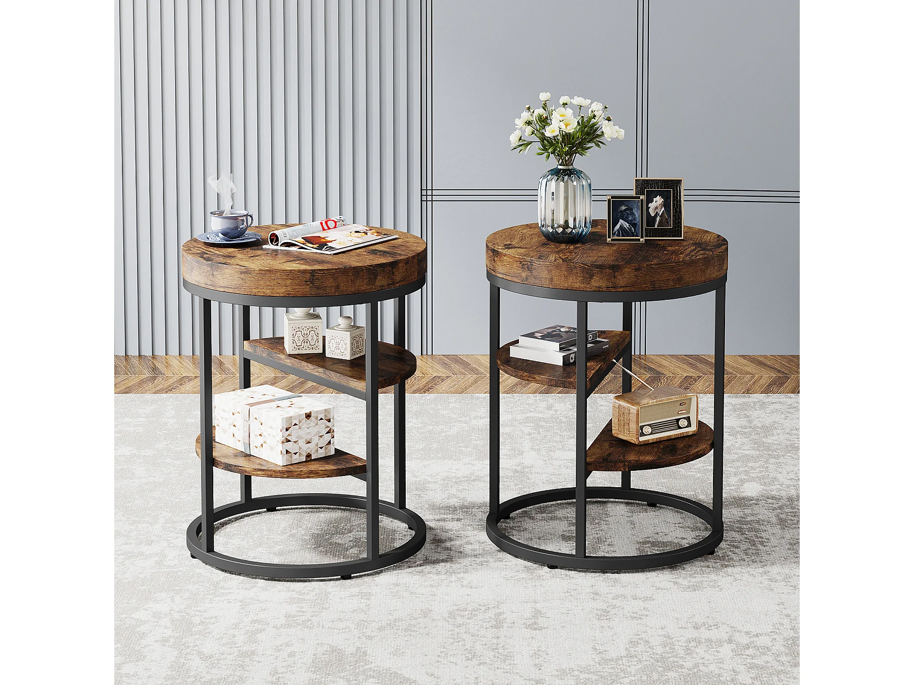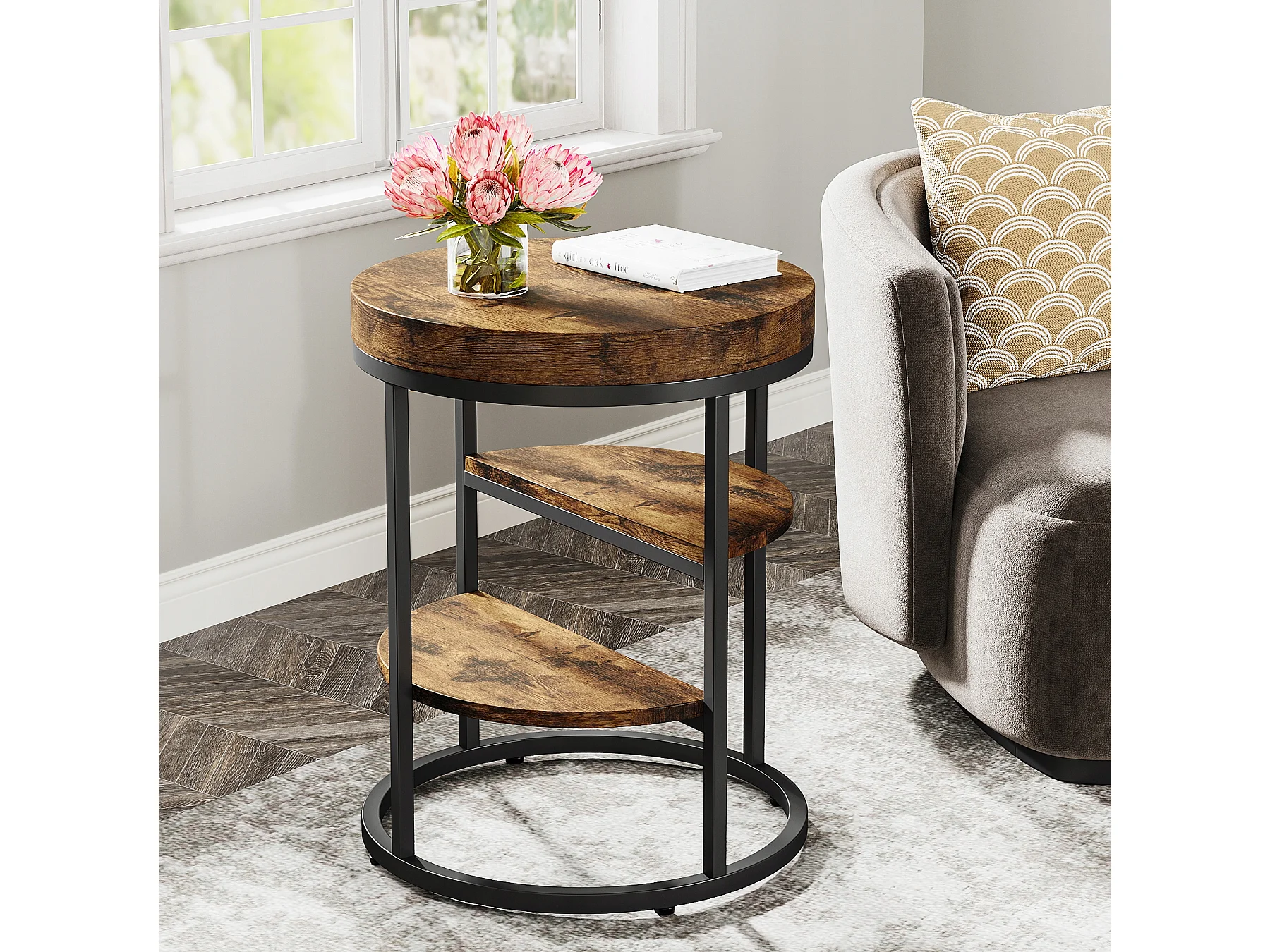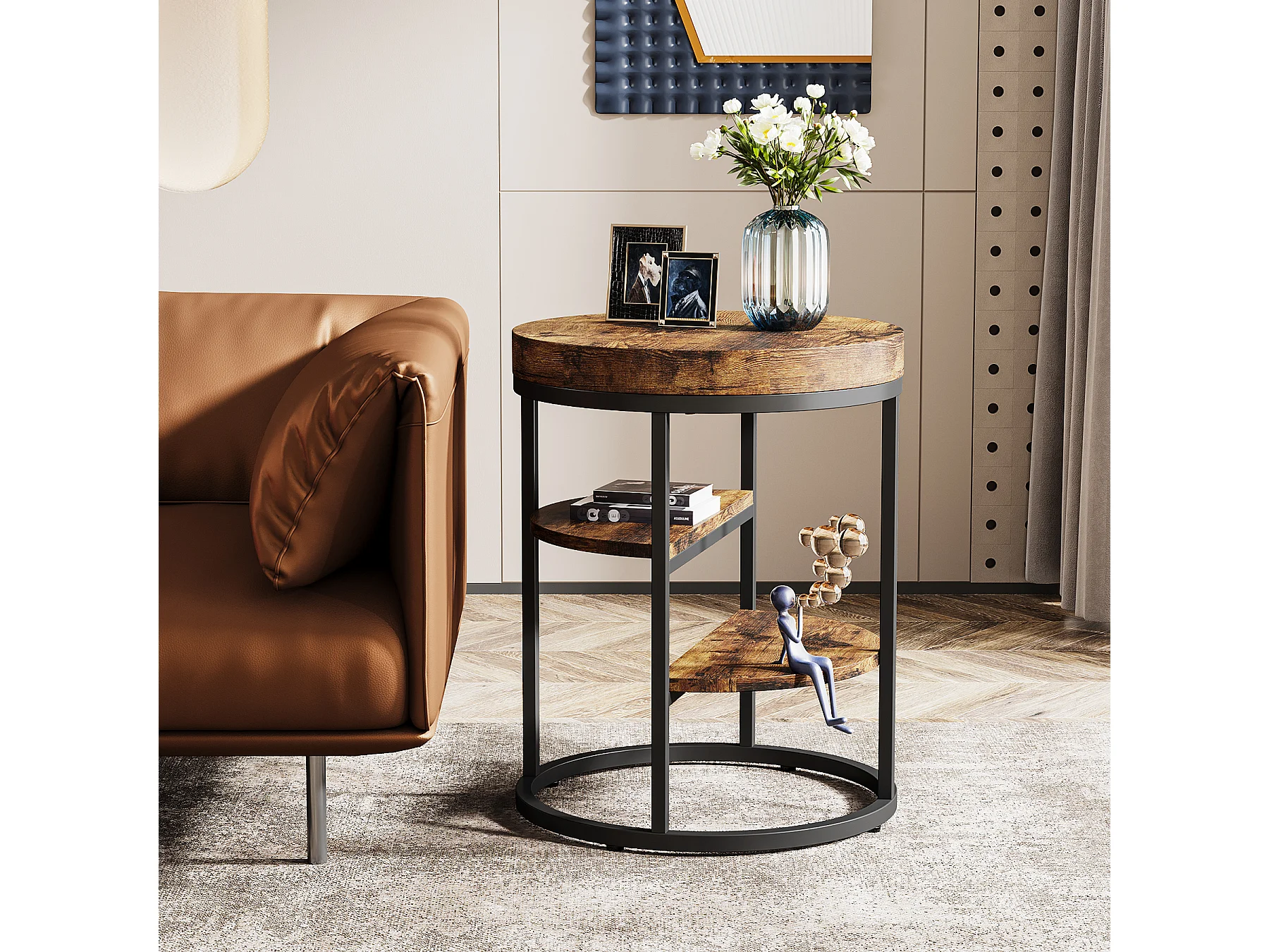 Mesa auxiliar redonda, pequeña mesa auxiliar con 3 estantes de almacenamiento, mesa auxiliar industrial, mesa de noche para el salón