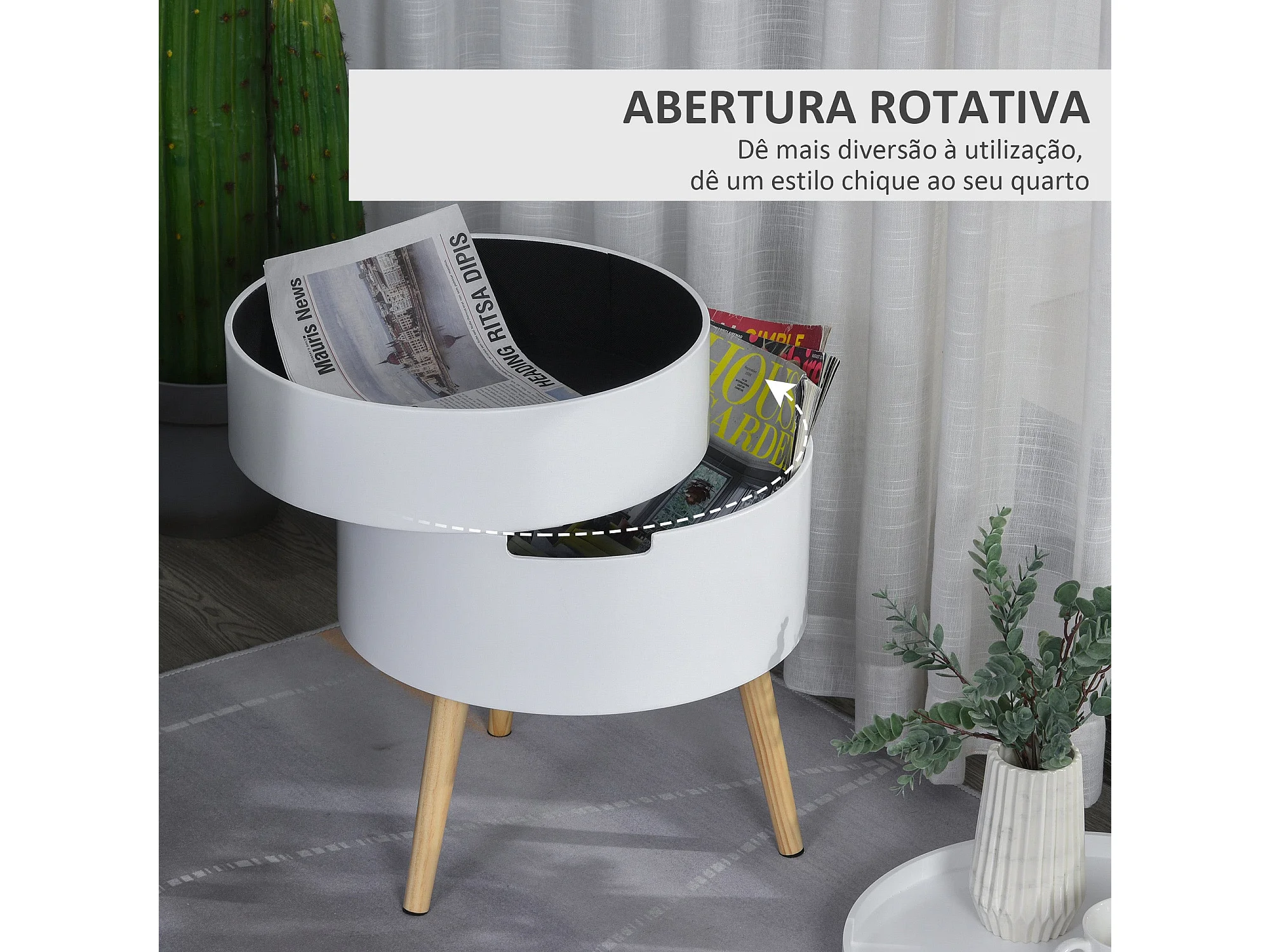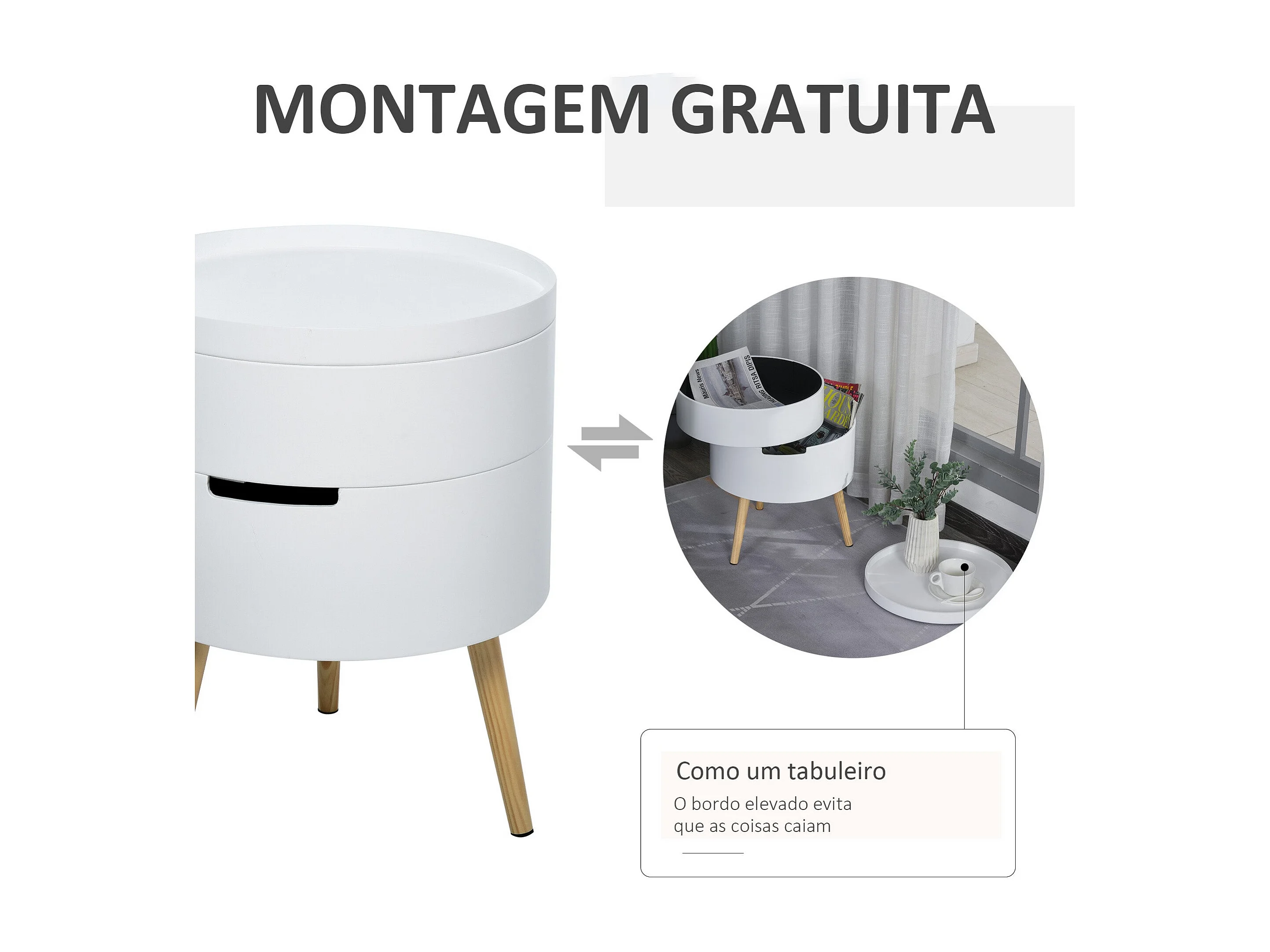 Mesa auxiliar Ritual Homcom 2 compartimentos blanco/natural Ø38x48 cm