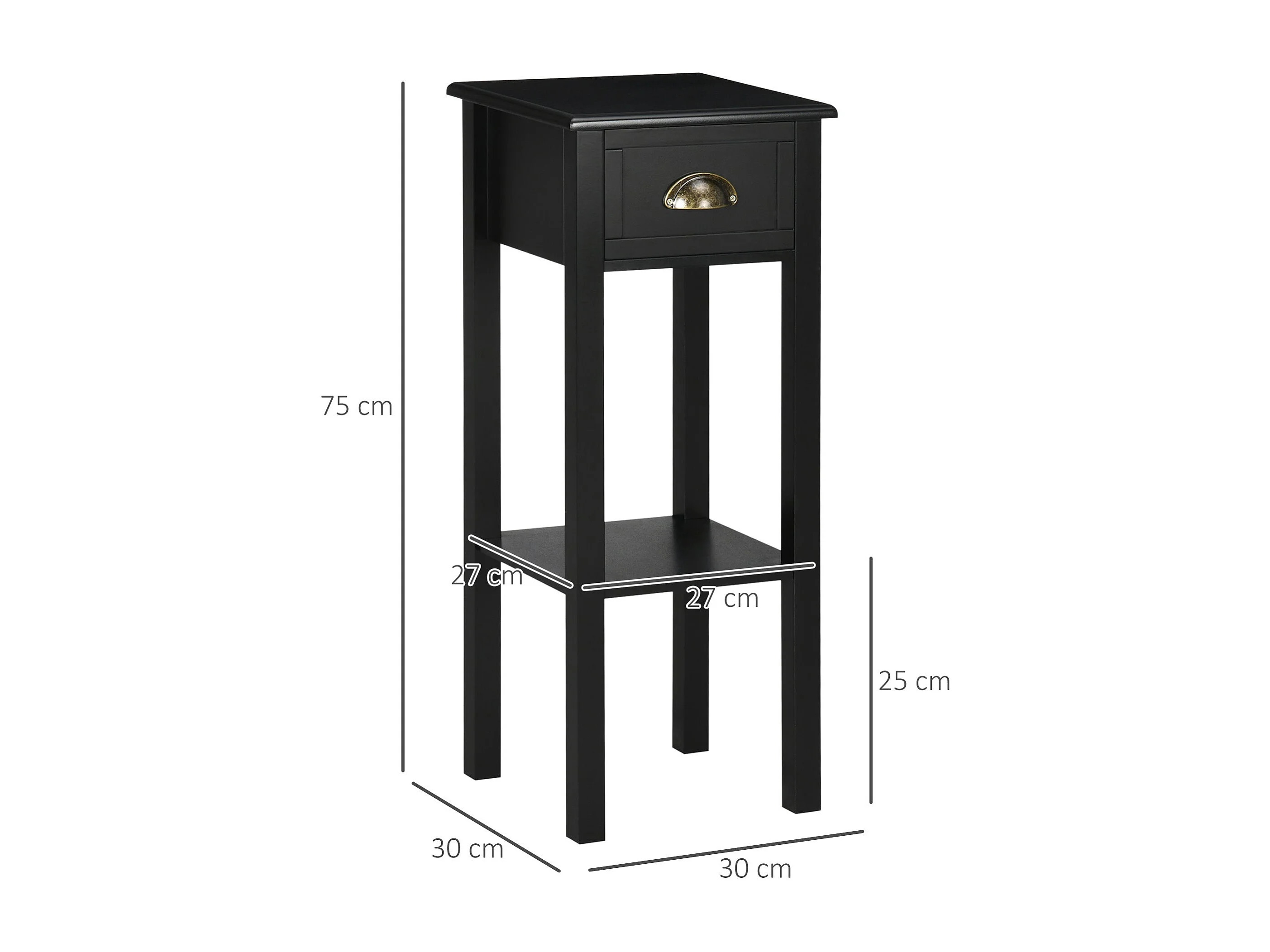 Mesa auxiliar Ronneo Homcom con cajón y estante negro 75x30x30 cm