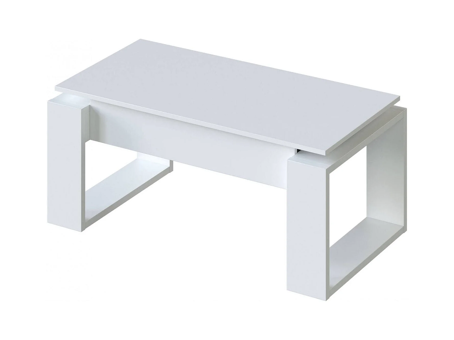 Mesa baja Ddav, Mesa de centro con tapa elevable, Mesa de centro para la sala de estar, 105x55h45/56 cm, Blanco