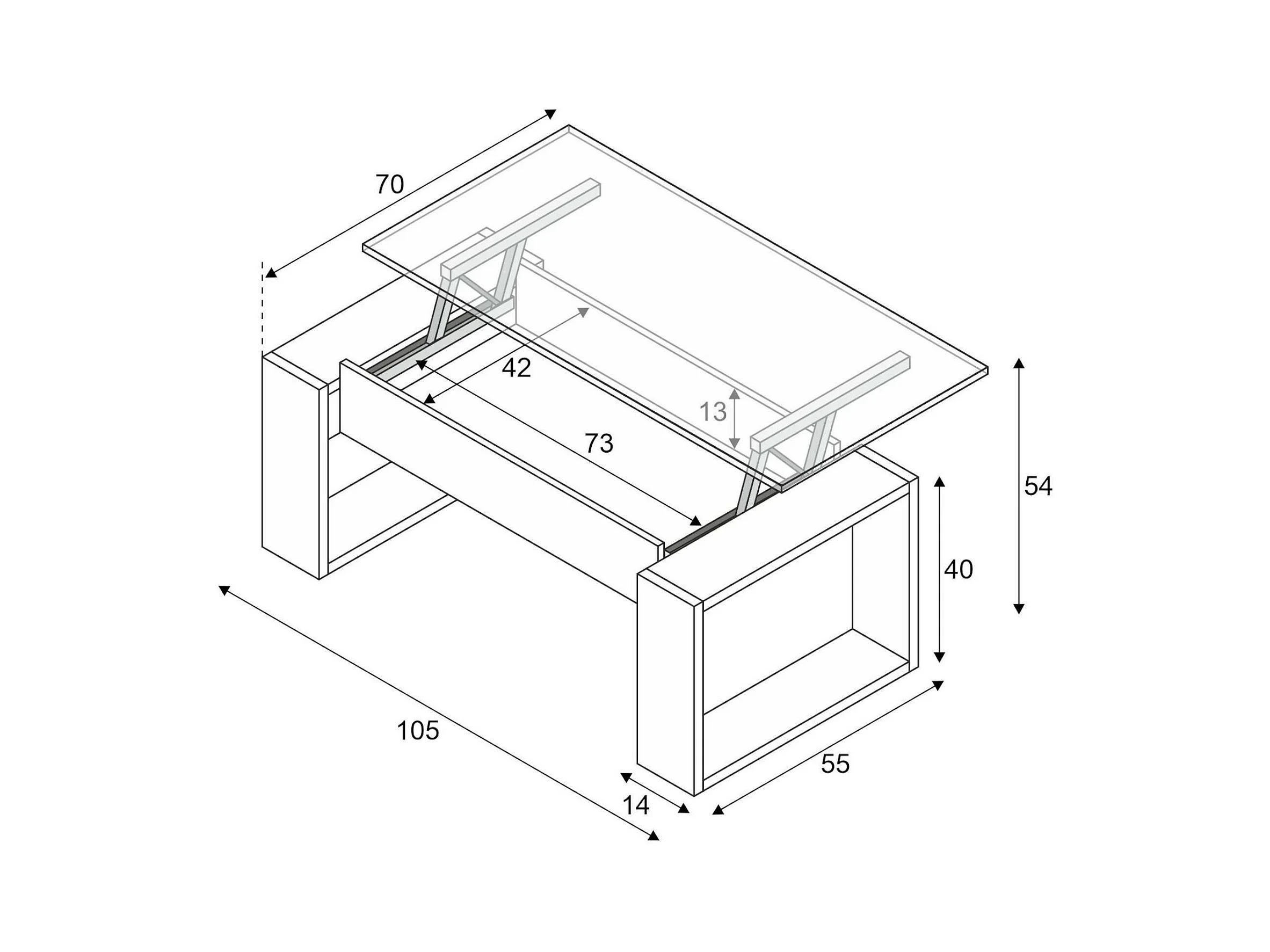 Mesa de centro con tablero elevable - L100 cm - Kendra