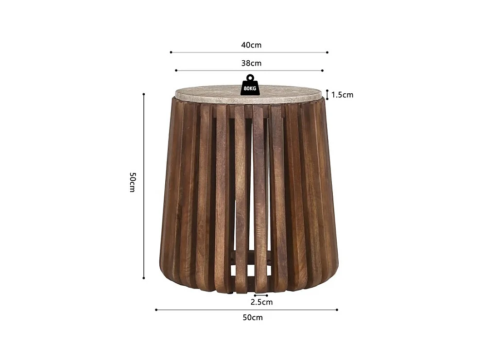 Mesa baja MAELORA – Mesa baja redonda Ø50 cm – Madera de mango & travertino – Diseño natural y elegante