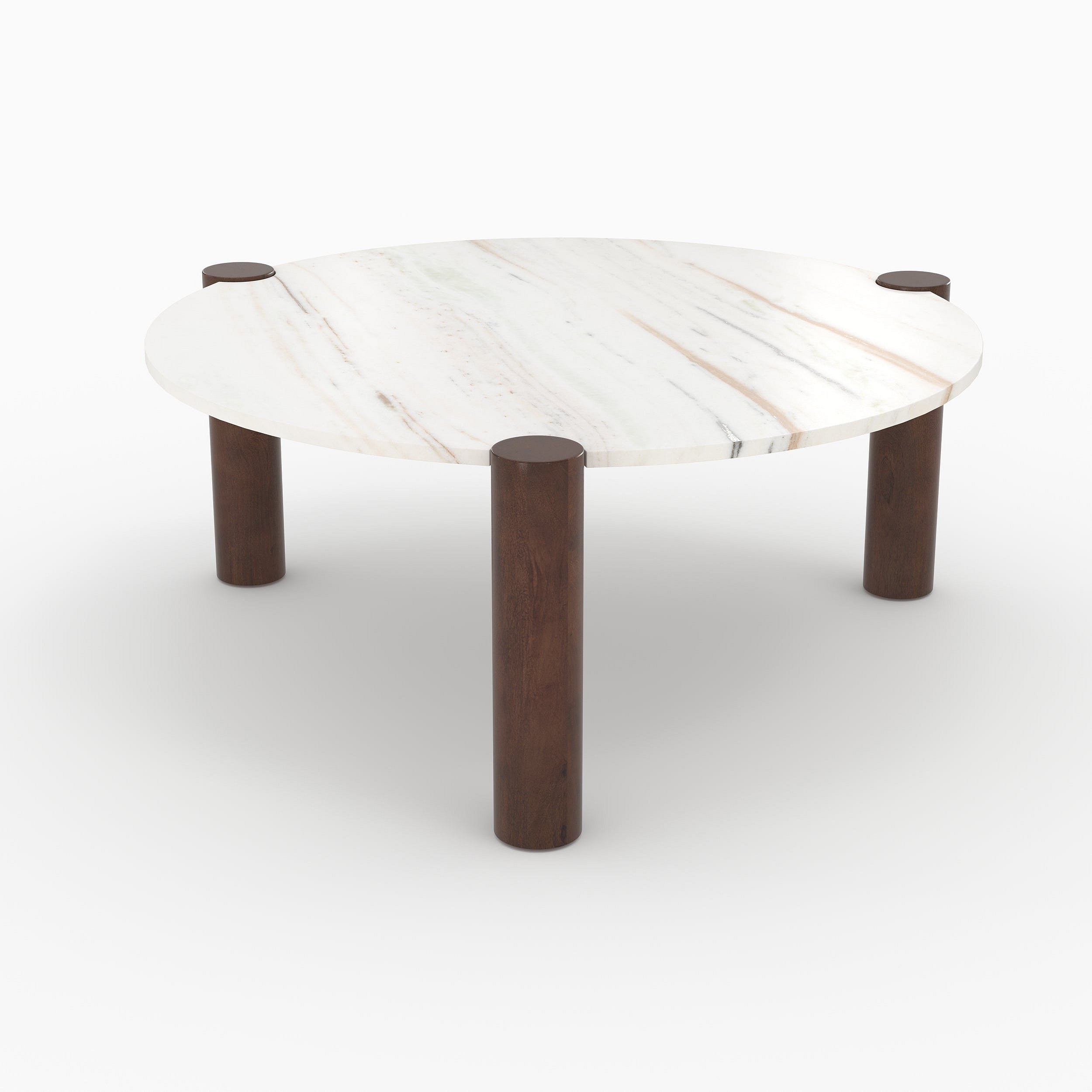 Mesa de centro redonda de mármol blanco y madera de mango