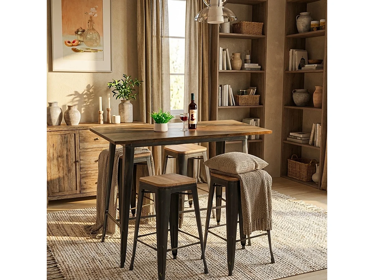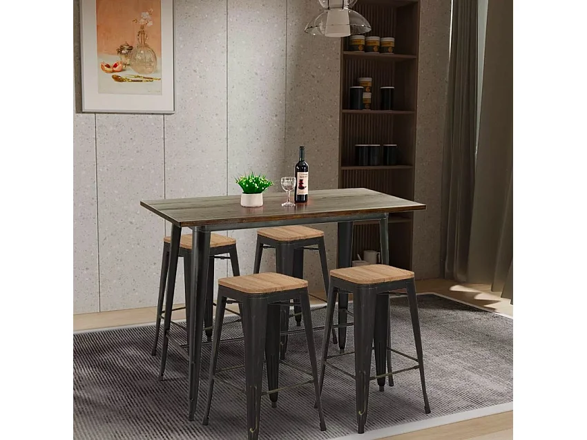 Mesa bar alta taburetes vintage industrial 120 x 60 x 106 cm Catal Brush - Negro