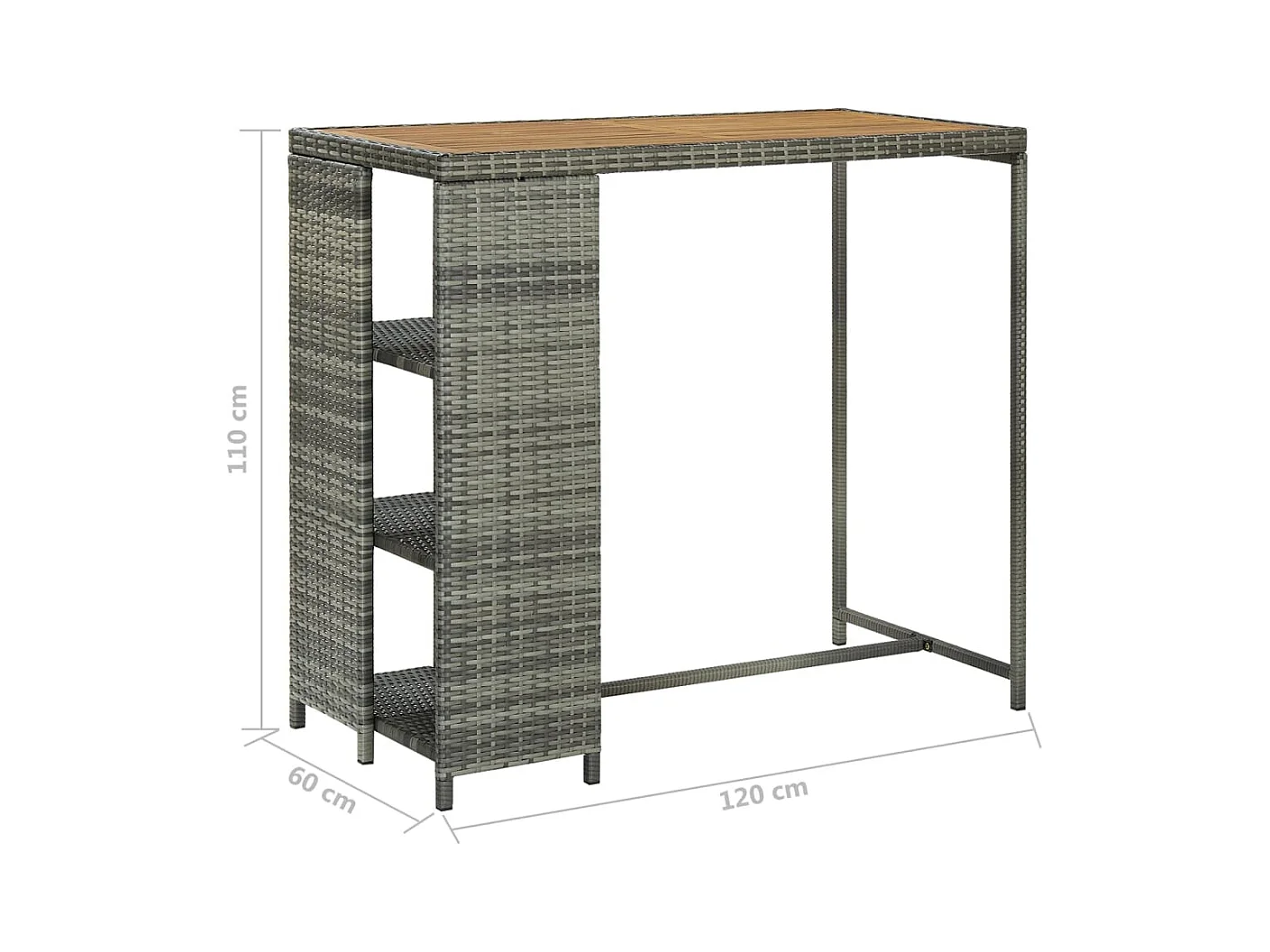 Mesa bar estante almacenaje 120x60x110 cm ratán sintético gris