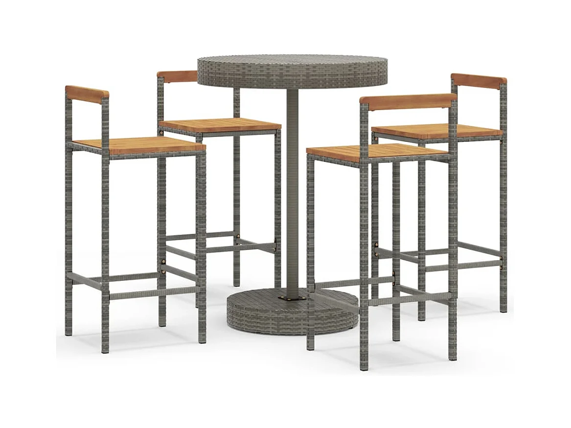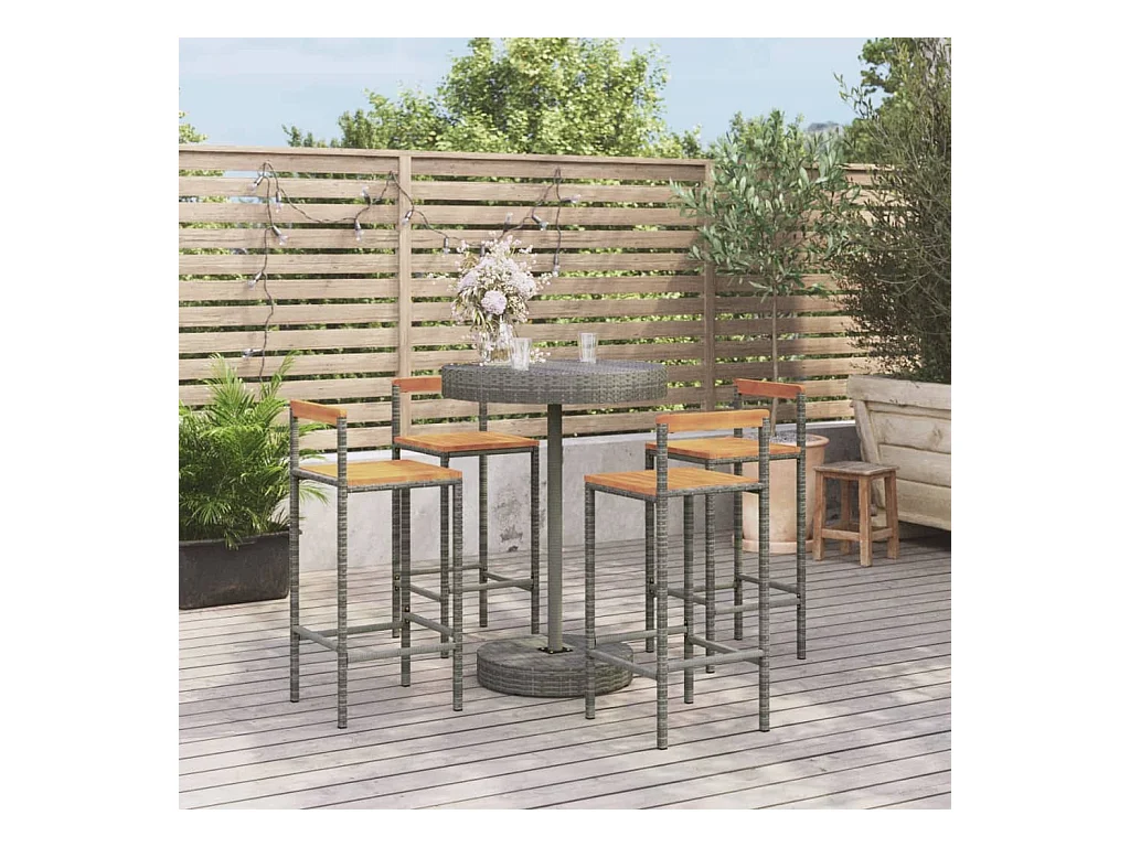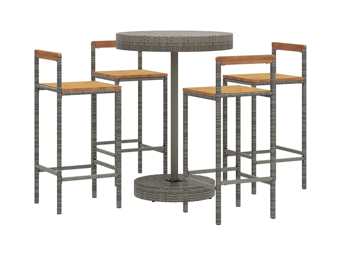 Mesa bar y taburetes jardín 5 piezas madera acacia ratán PE gris