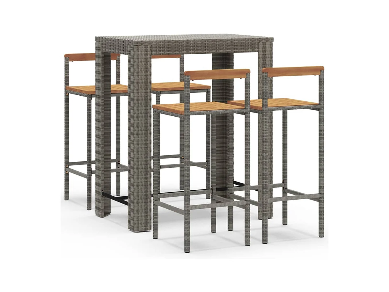 Mesa bar y taburetes jardín 5 piezas madera acacia ratán PE gris