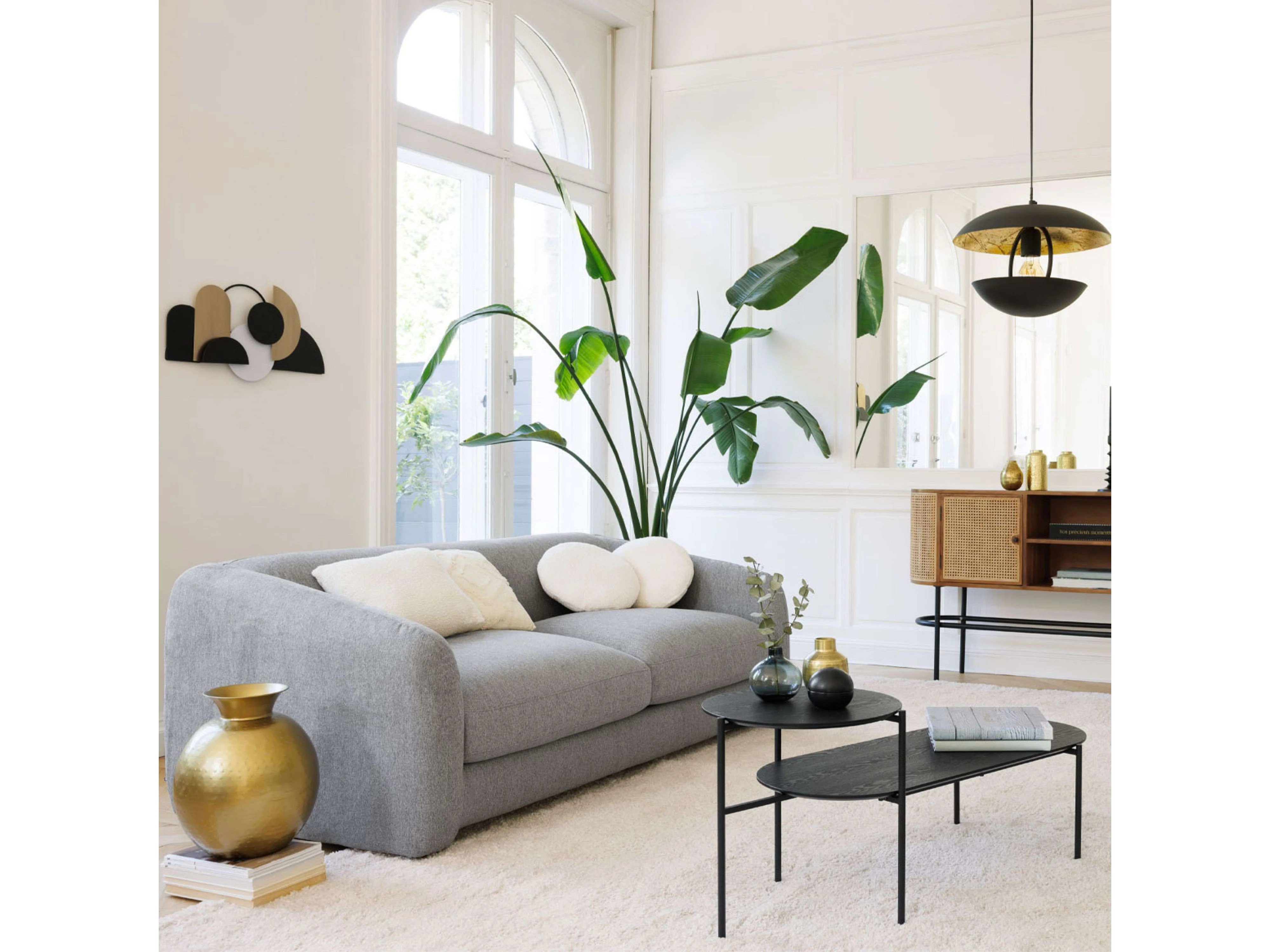 Mesa de centro redonda moderna de 90 cm de metal y efecto mármol Sulley+ - Negro