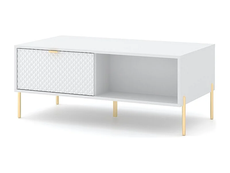 Mesa centro auxiliar para el salón con 2 puertas y receptáculo color blanco y dorado Oviedo