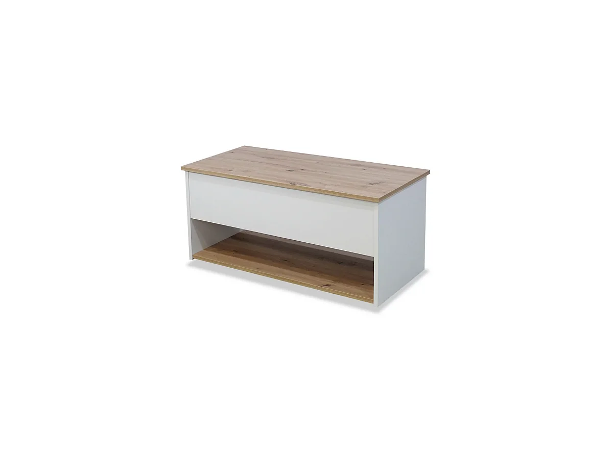 Mesa centro elevable acabado blanco/artisan, 50cm(alto) 108cm(ancho) 50cm(largo)