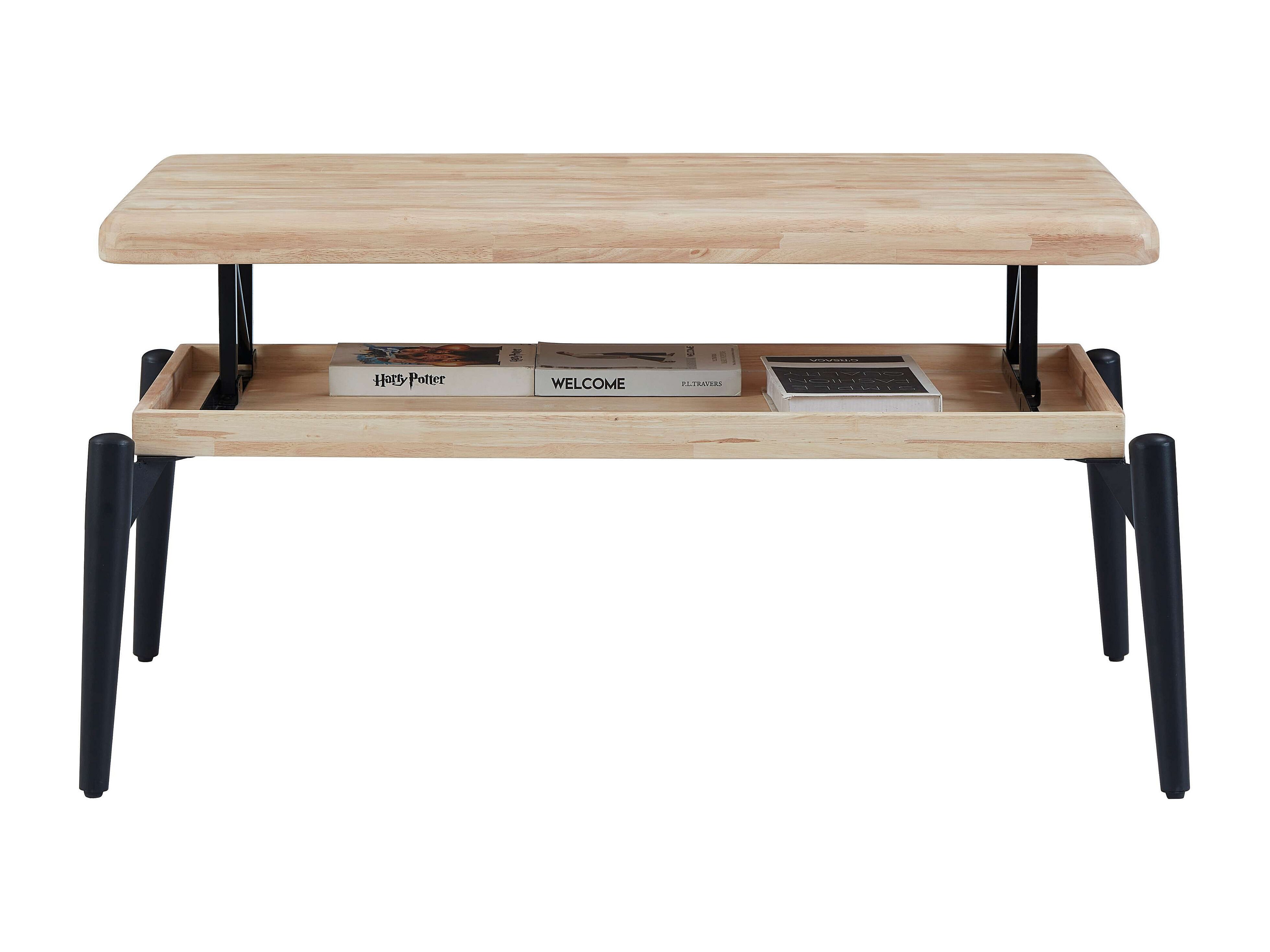 Mesa de centro elevable Natural convertible en mesa de comedor roble Nordish/negro 49x110x57 cm Adec