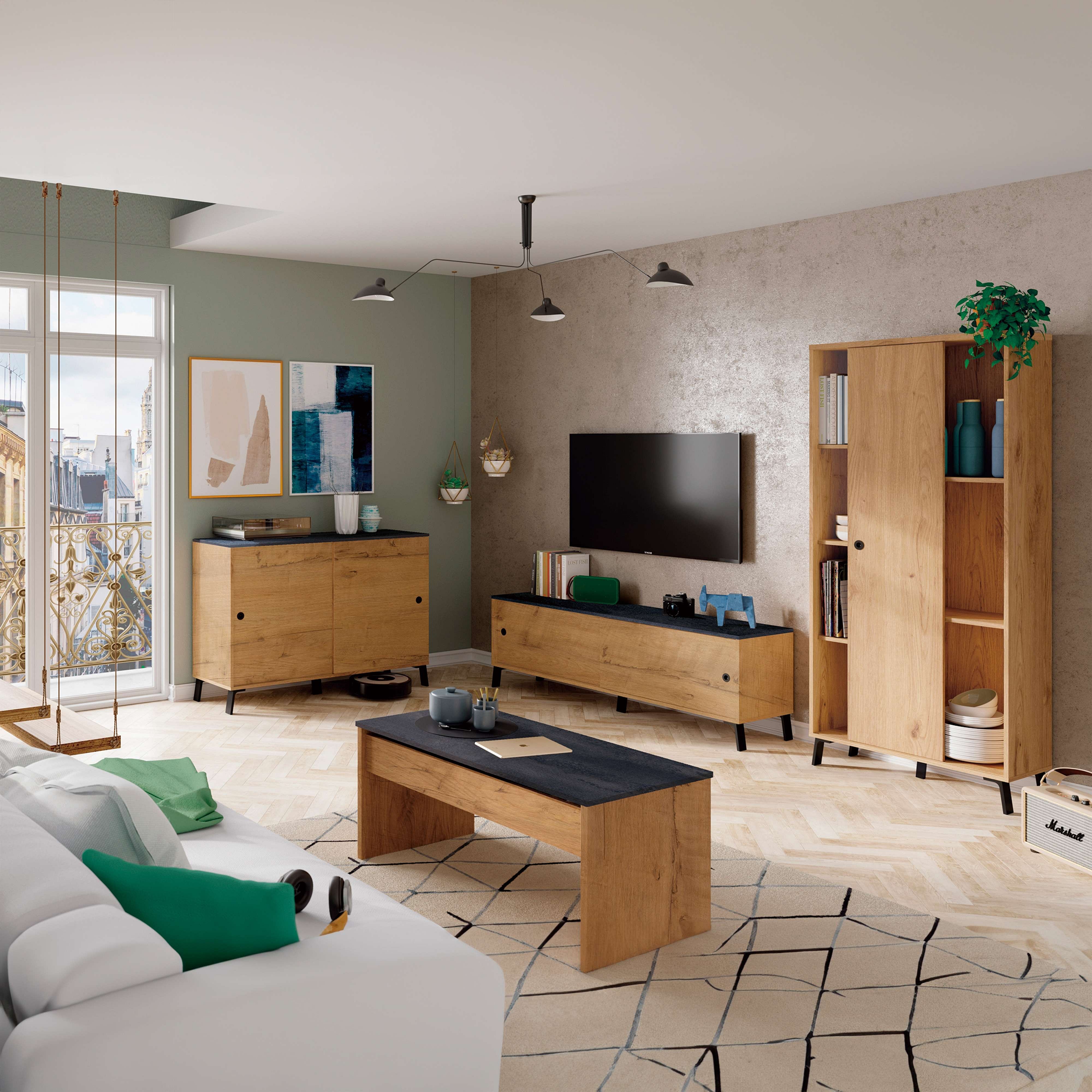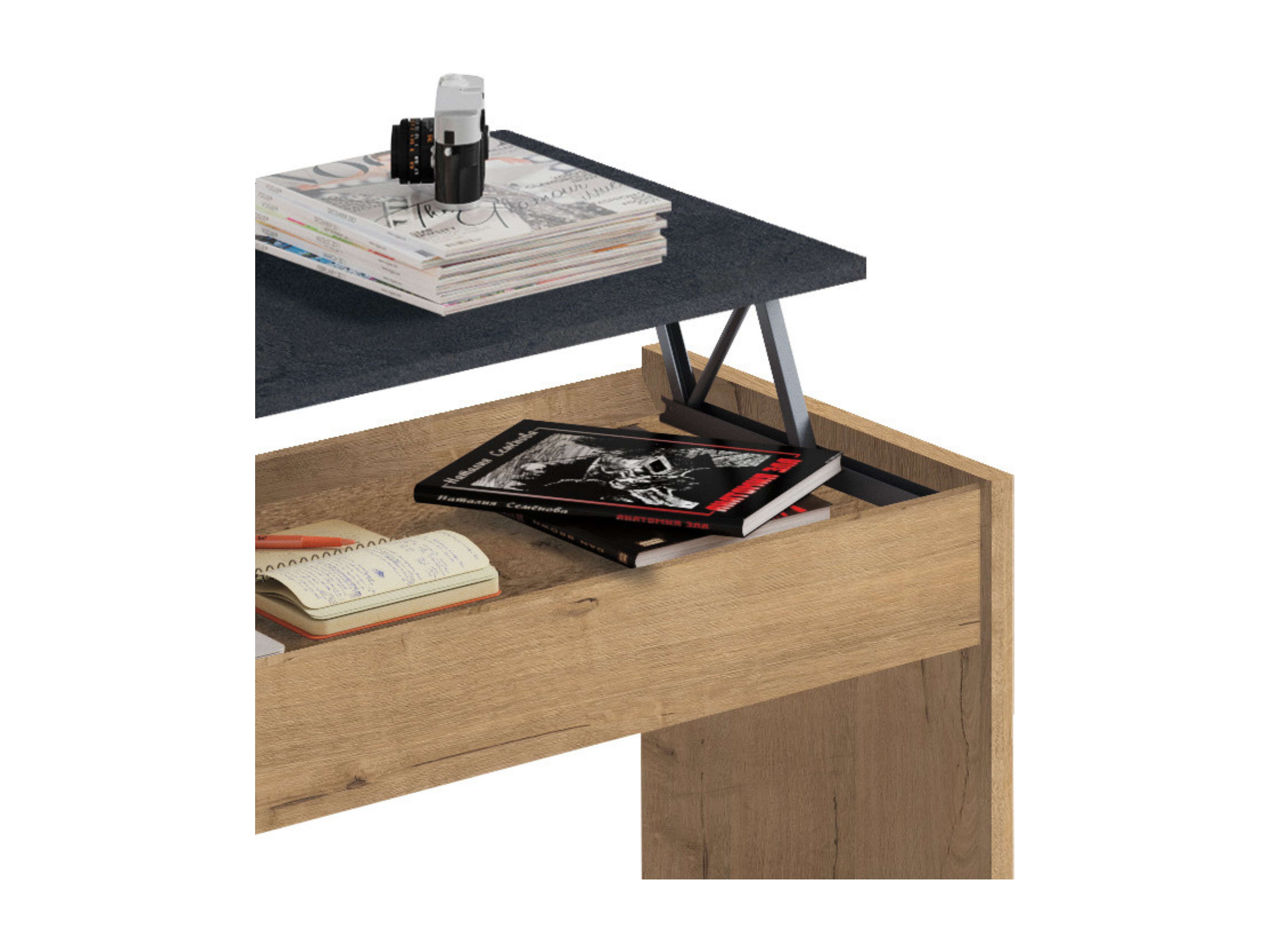 Mesa de centro elevable de 100x45x50 cm de estilo moderno en color roble Premier