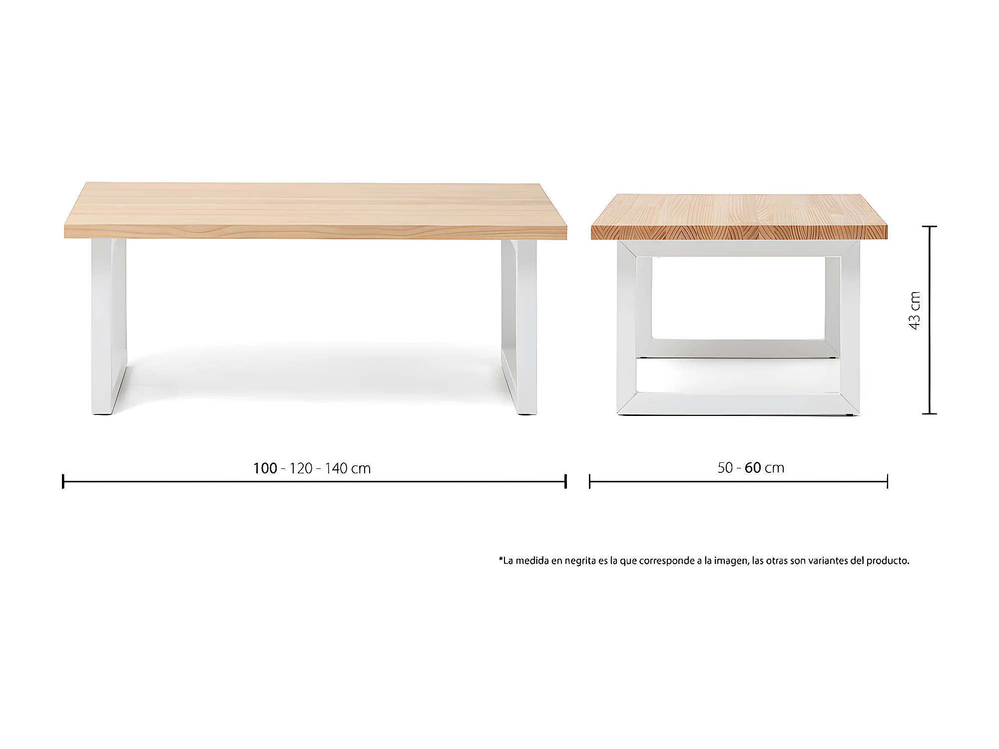 Mesa Centro iCub Strong ECO 140x60x43cm Blanca madera acabado natural estilo nórdico industrial Box Furniture