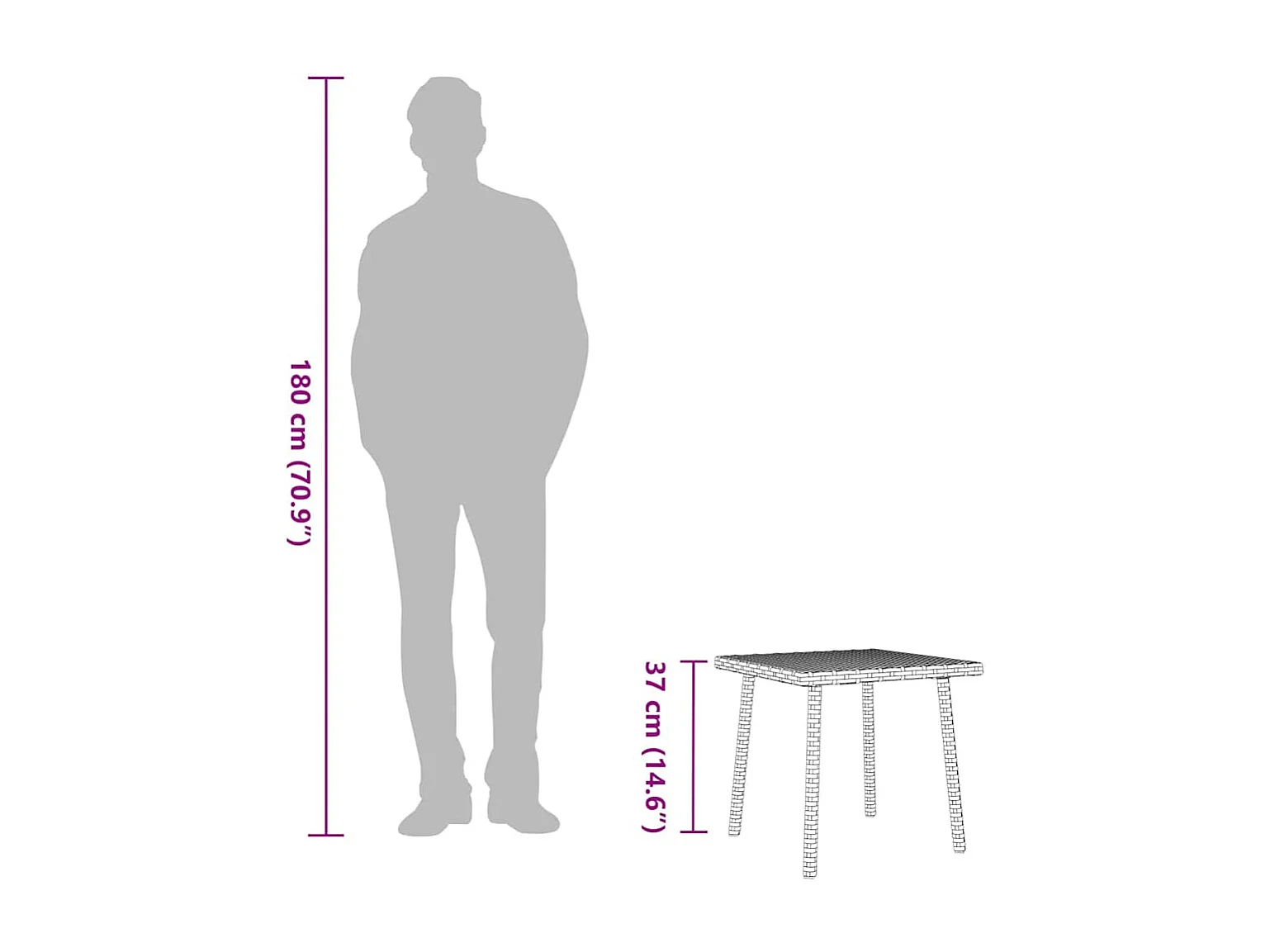 Mesa centro jardín rectangular negra 40x40x37cm ratán sintético