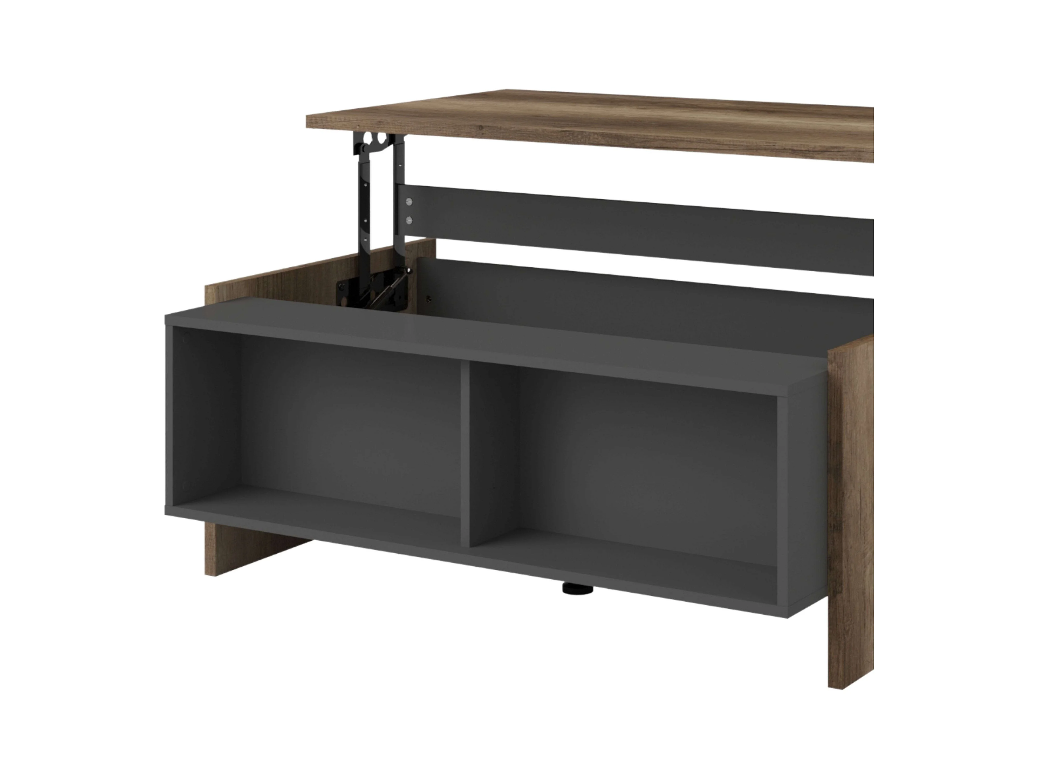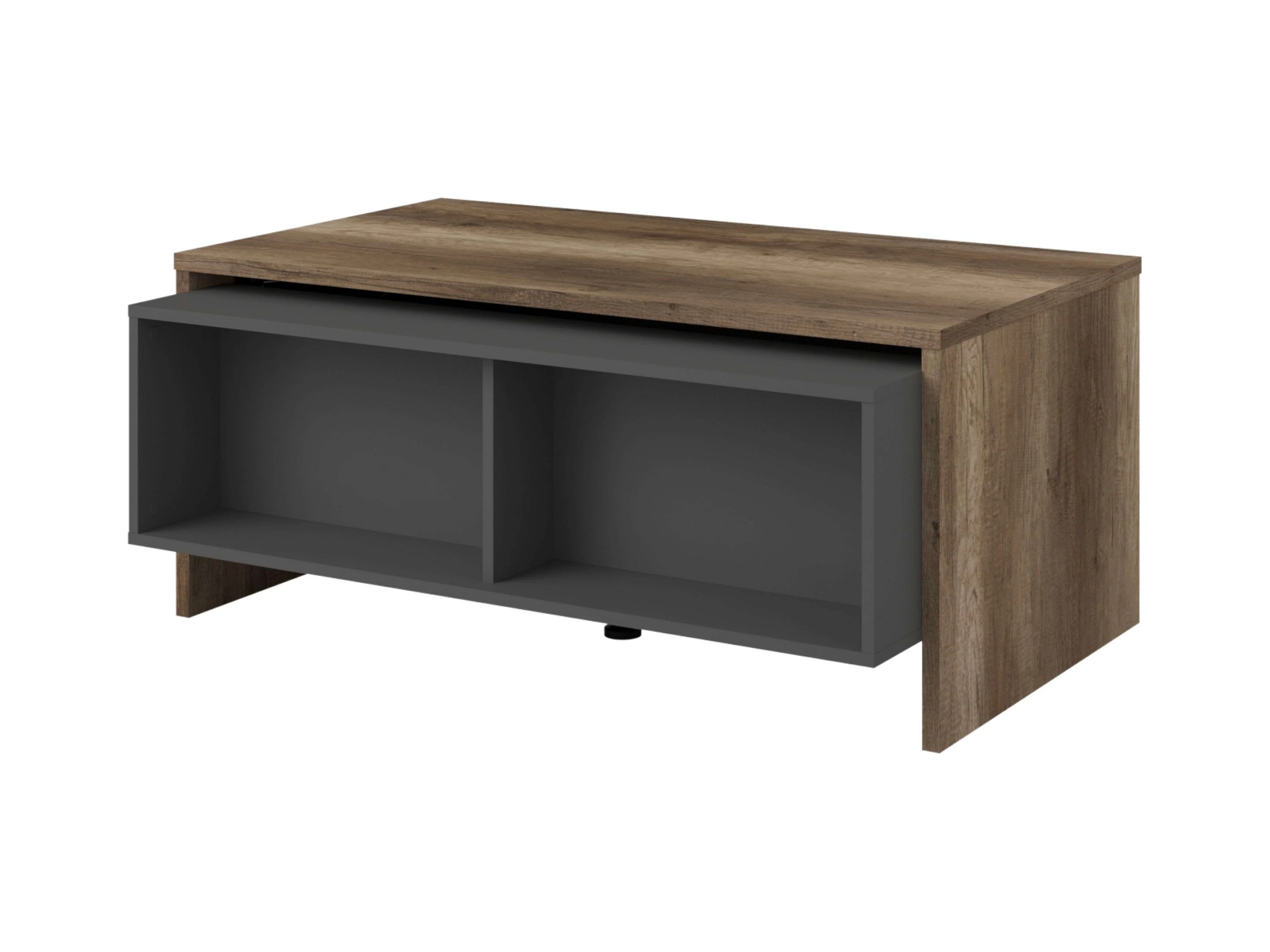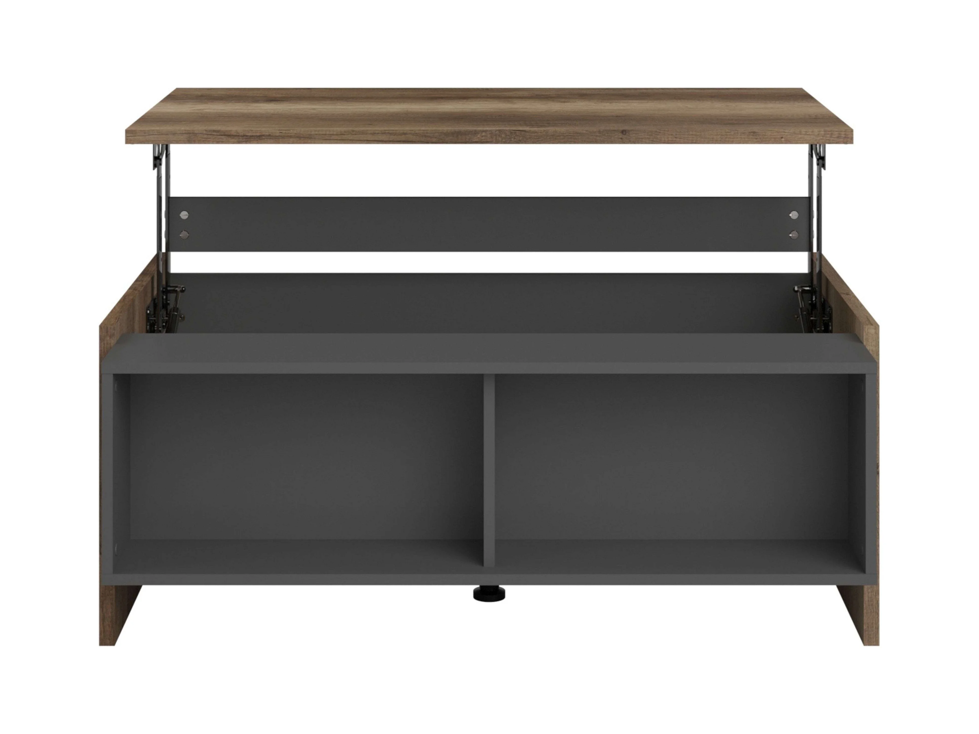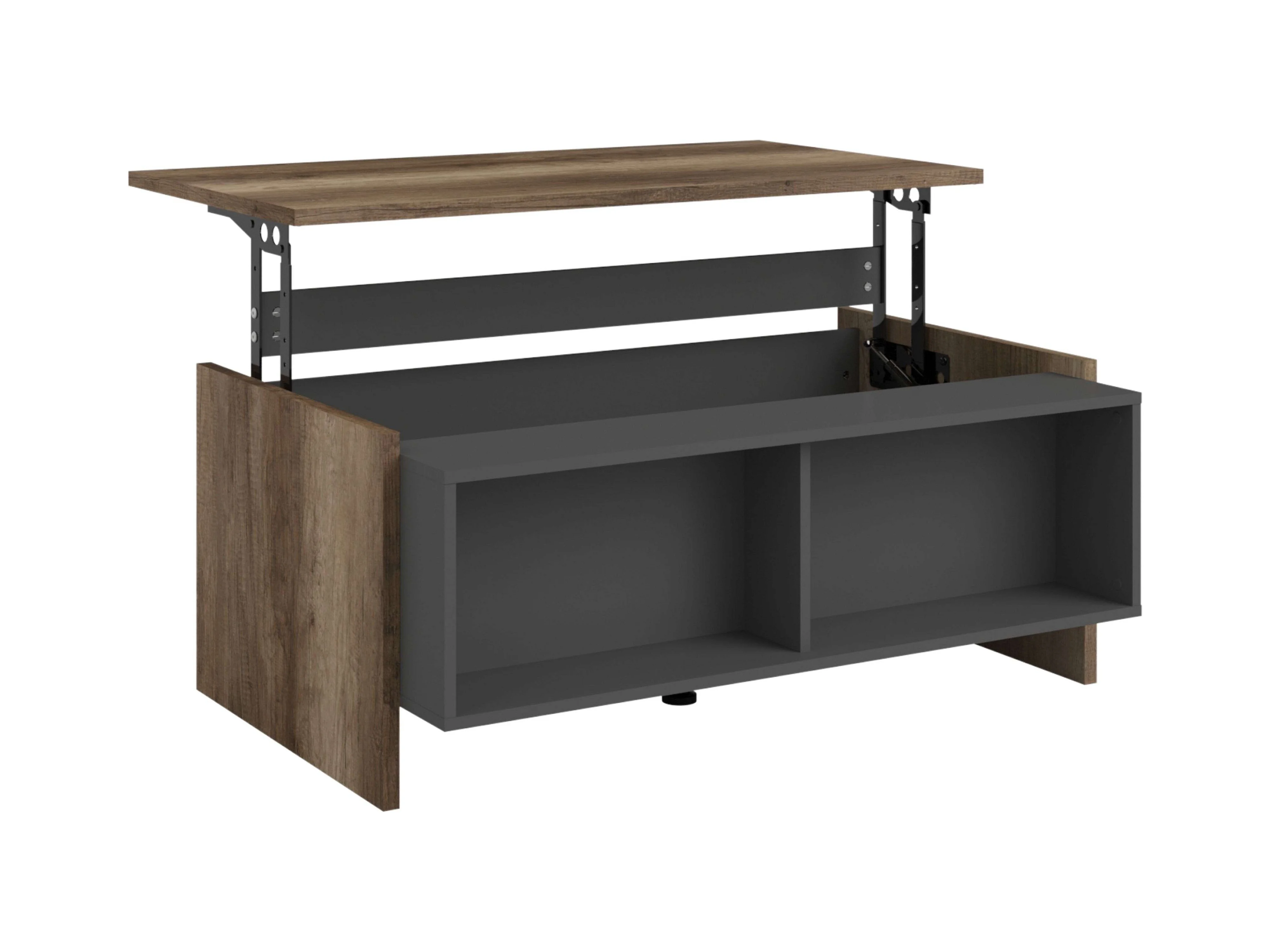 Mesa de centro elevable de 45x90x52 cm con sobre en color gris con almacenaje Rubi