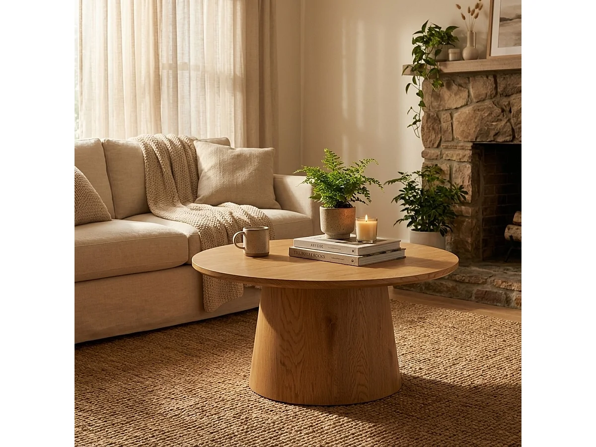 Mesa centro redonda de madera de 80cm para salón o sala de estar Nauru