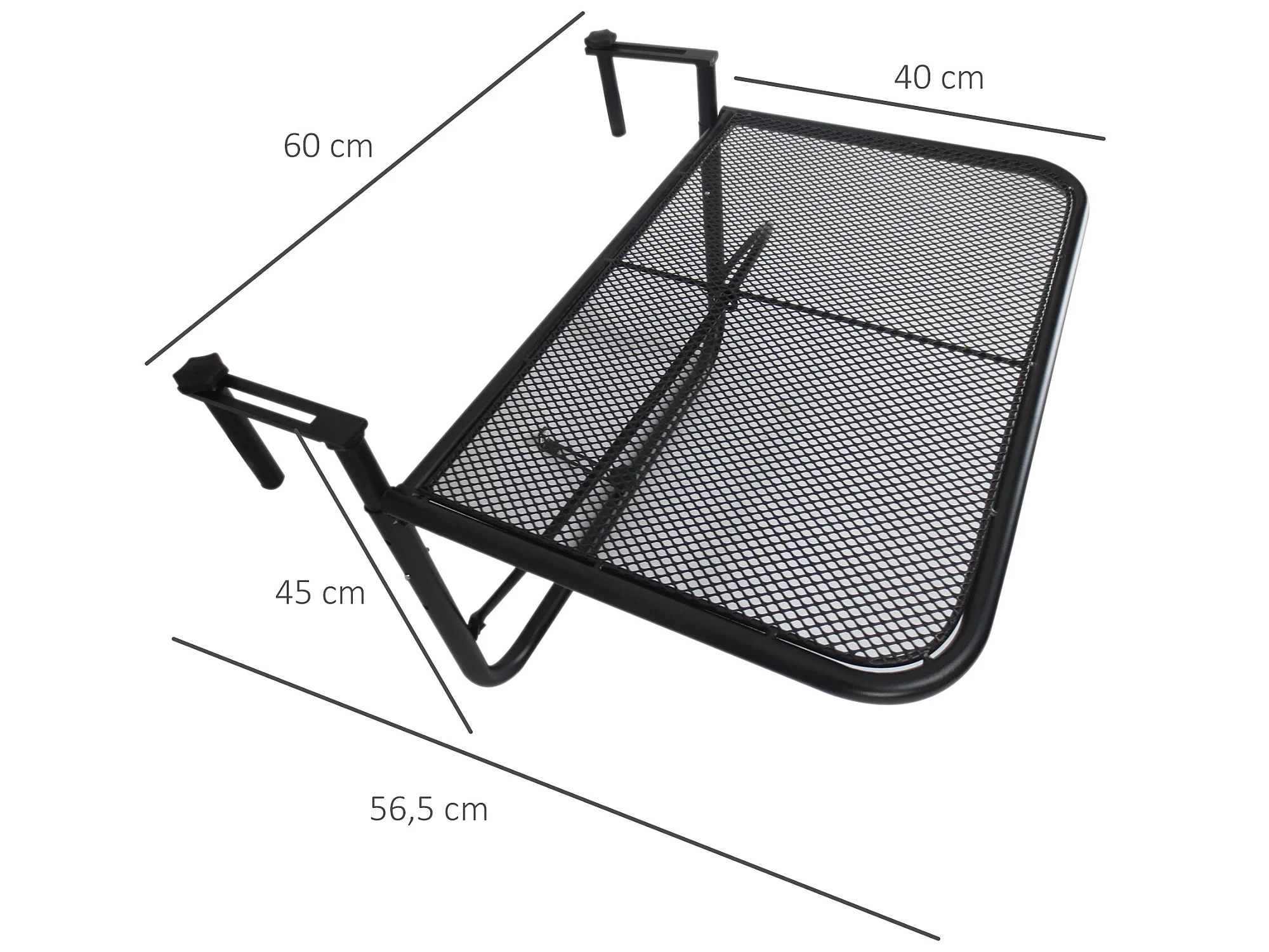 Mesa colgante de balcón negro 60x56.5x45 cm Outsunny