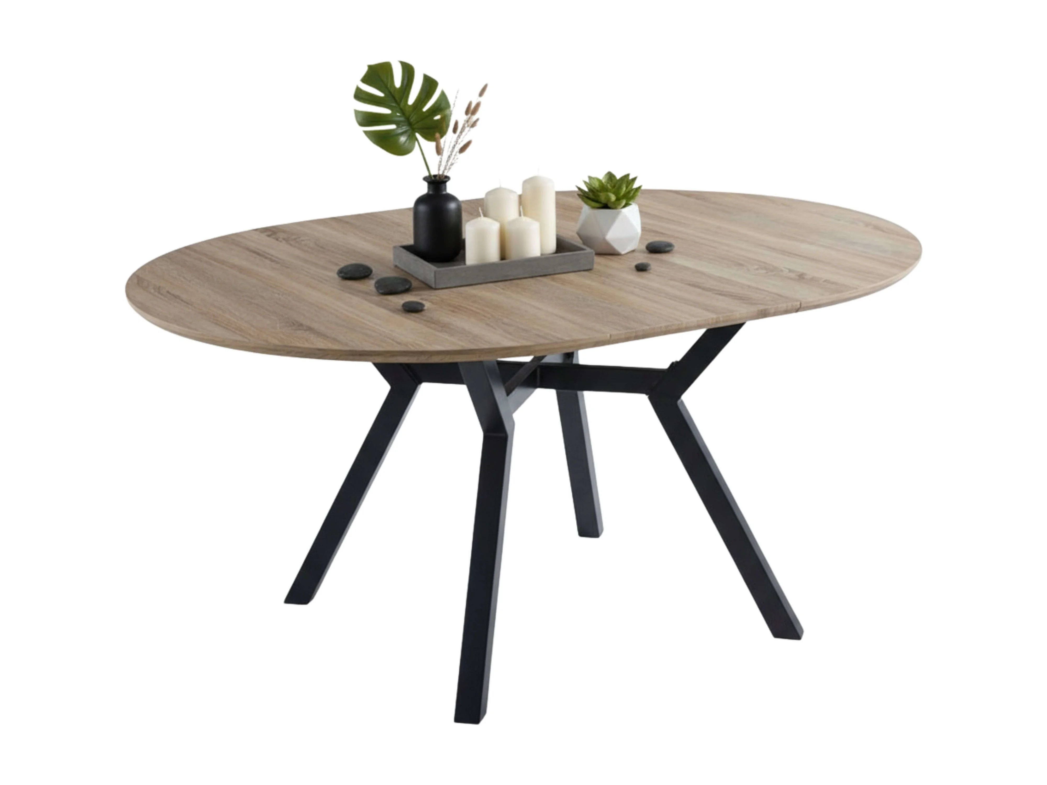 Mesa Comedor Alfa Extensible 120/160cm Melamina Roble/Negro, Patas Metal