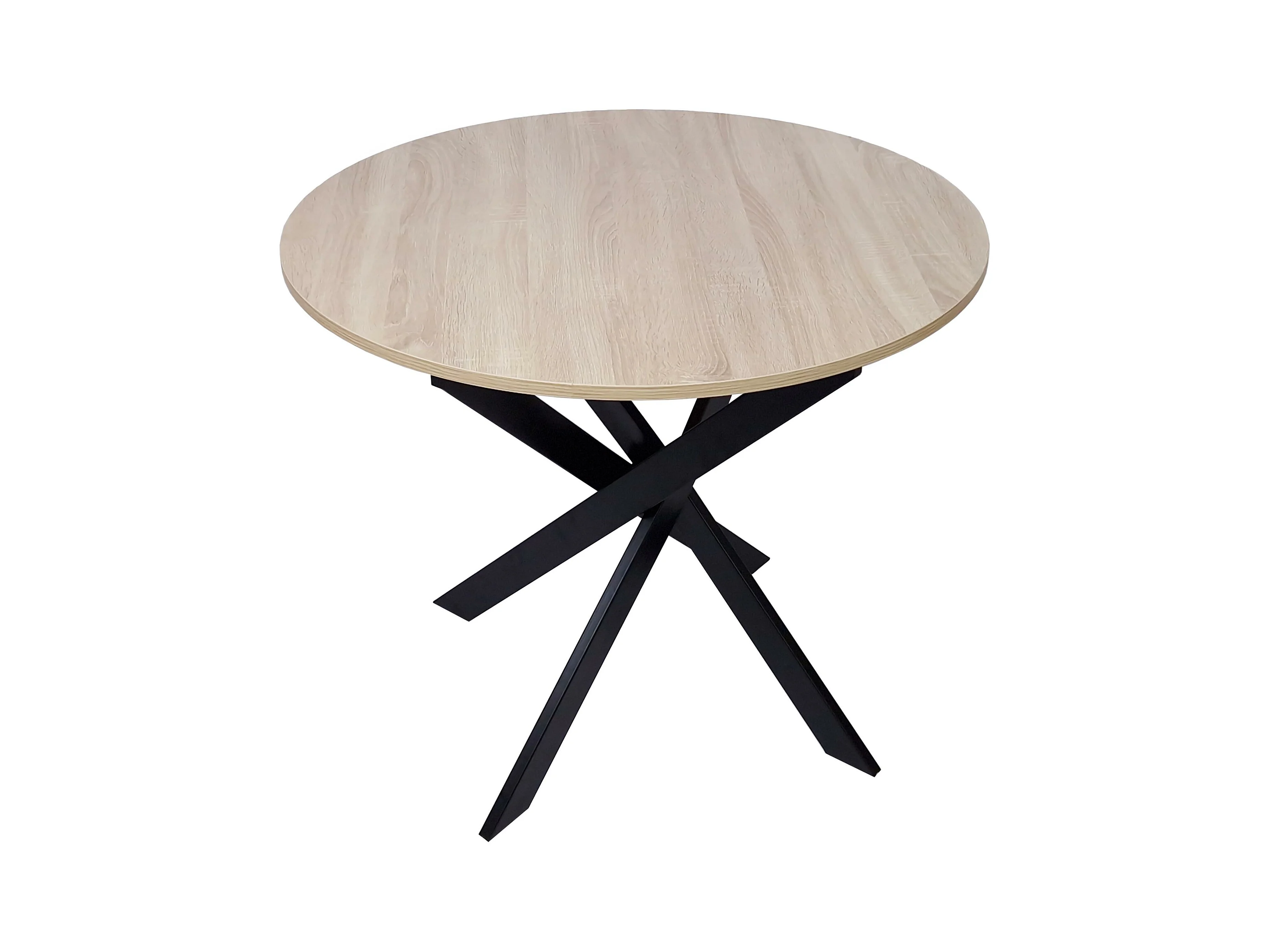 Mesa de comedor fija redonda ZEN, 90 x 90 x 77 cm, Capacidad hasta 4 personas, Color roble, Patas metálicas negro lacado mate
