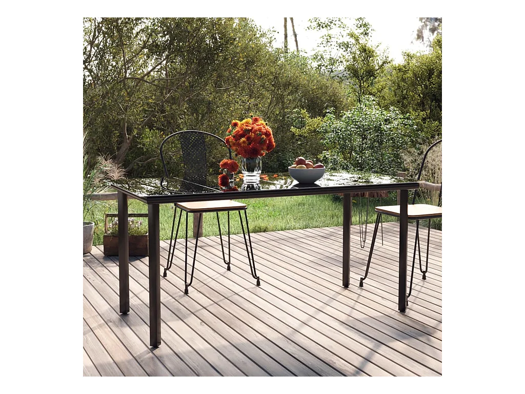 Mesa comedor jardín acero y vidrio templado negro 160x80x74 cm