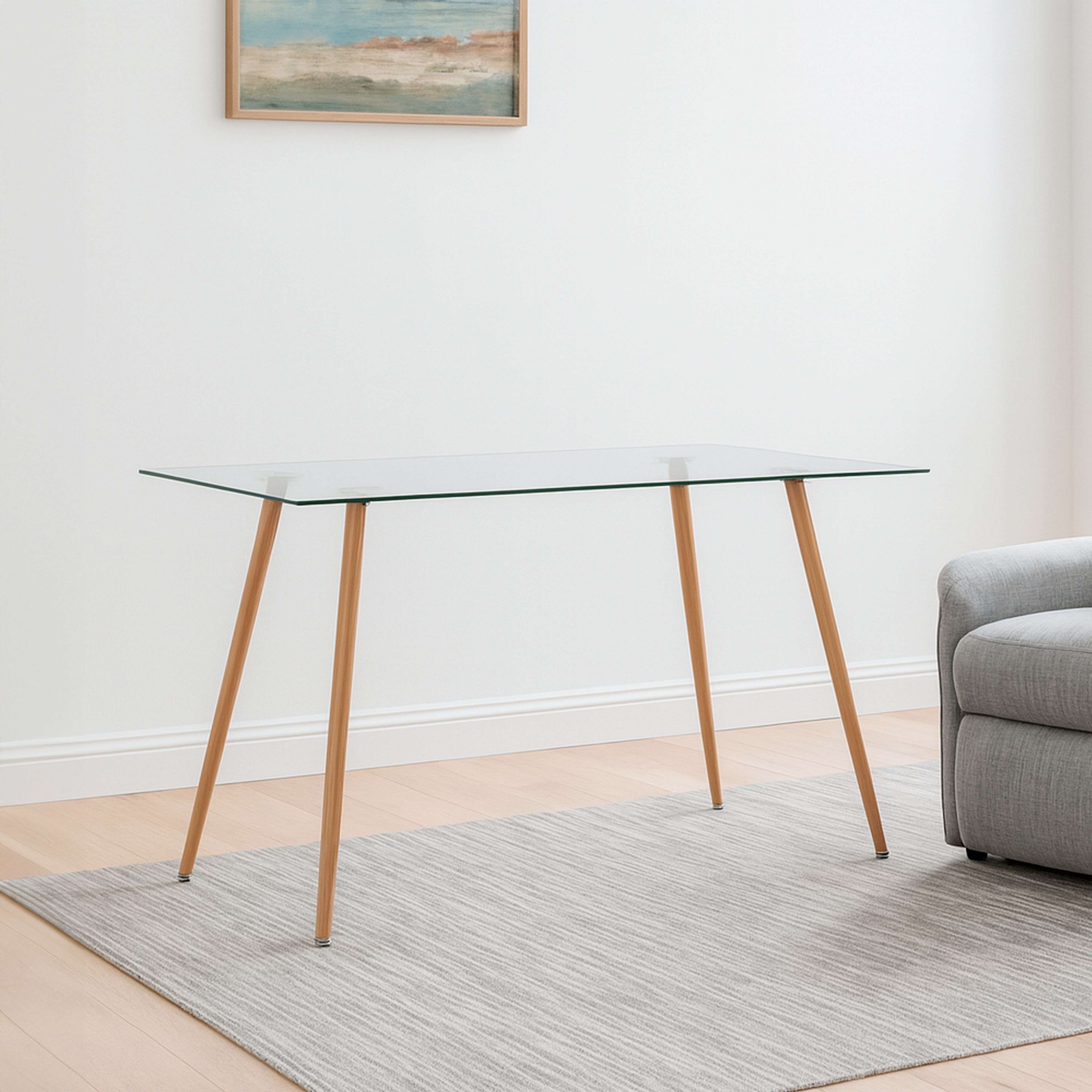Mesa comedor Kler cristal salón color roble Sonoma 140x75x80 cm
