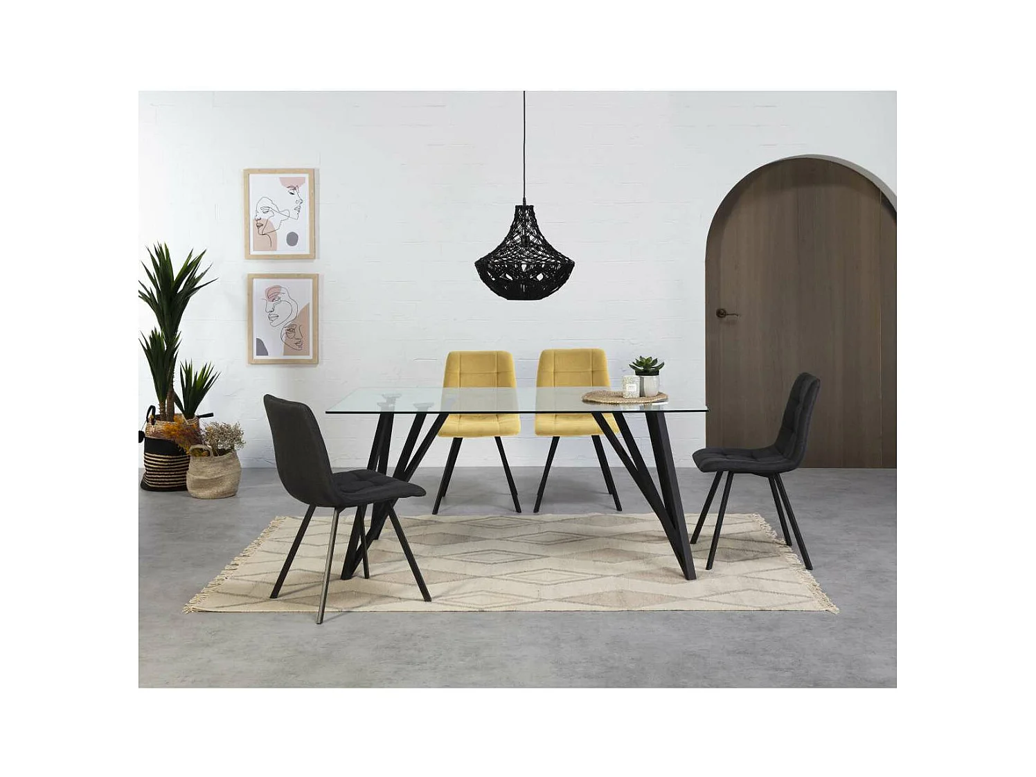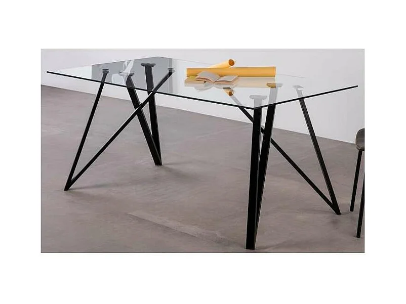 Mesa comedor rectangular Nala tapa cristal en acabado negro 76 cm(alto)160 cm(ancho)90 cm(