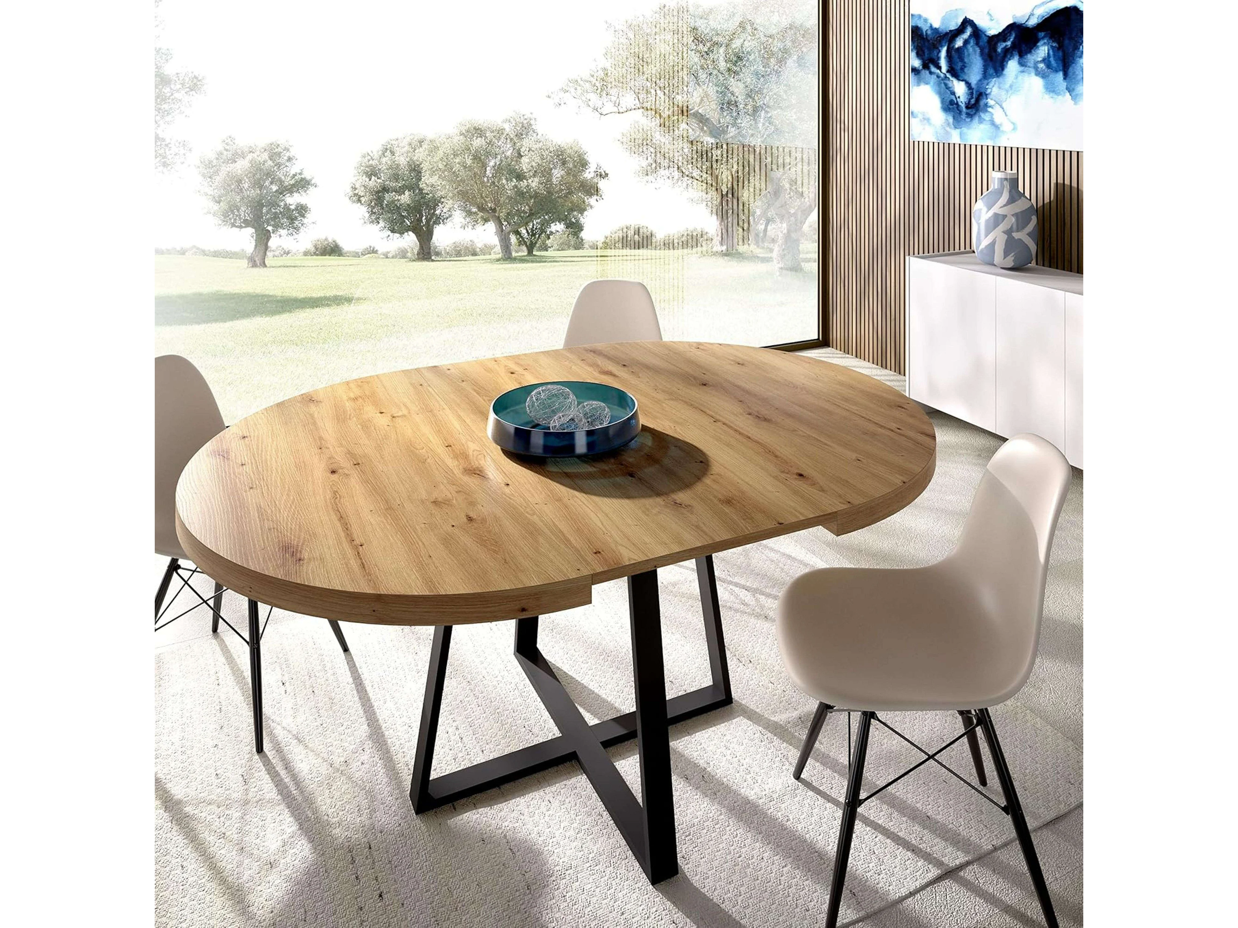 Mesa Redonda Extensible Cali Comedor Industrial Roble Nordish 120/200x120 cm