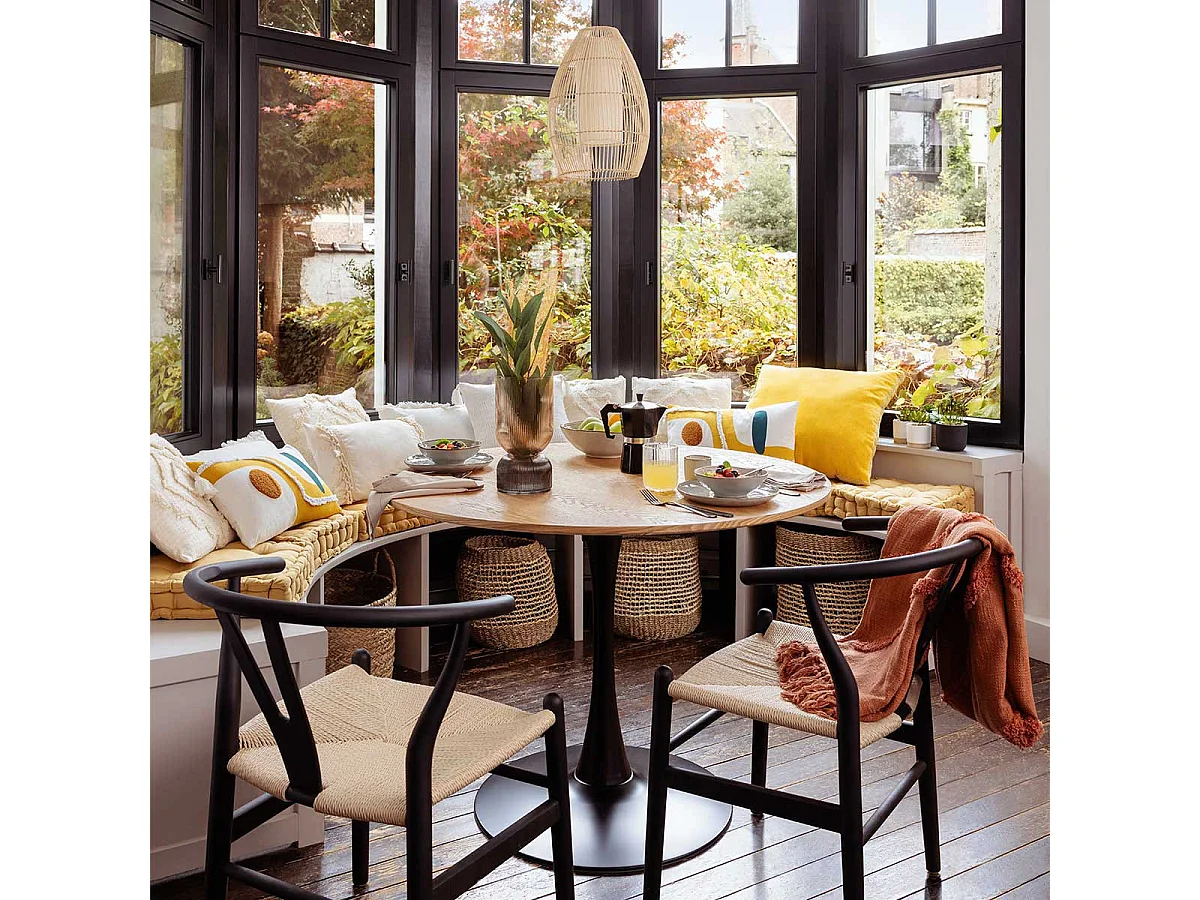 Mesa Comedor Redonda Fija Elias Roble/Negro 102x102 cm