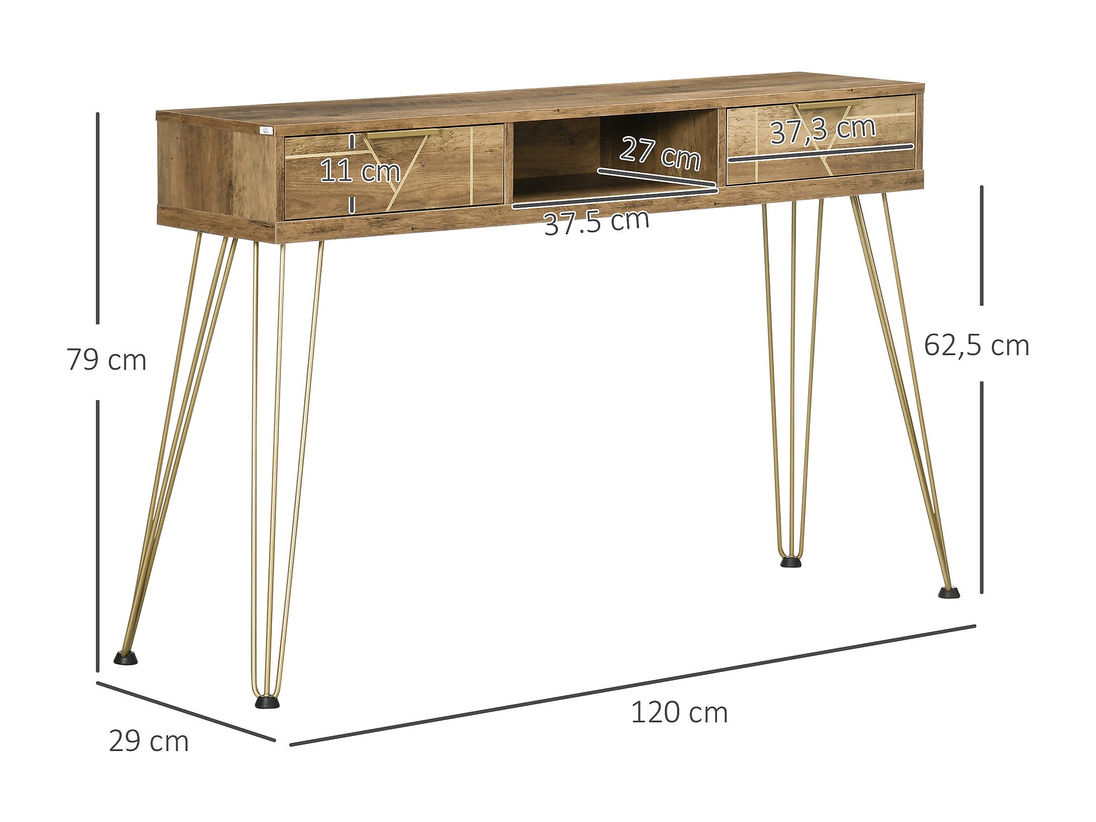 Mesa consola bronce 120x29x79 cm HOMCOM