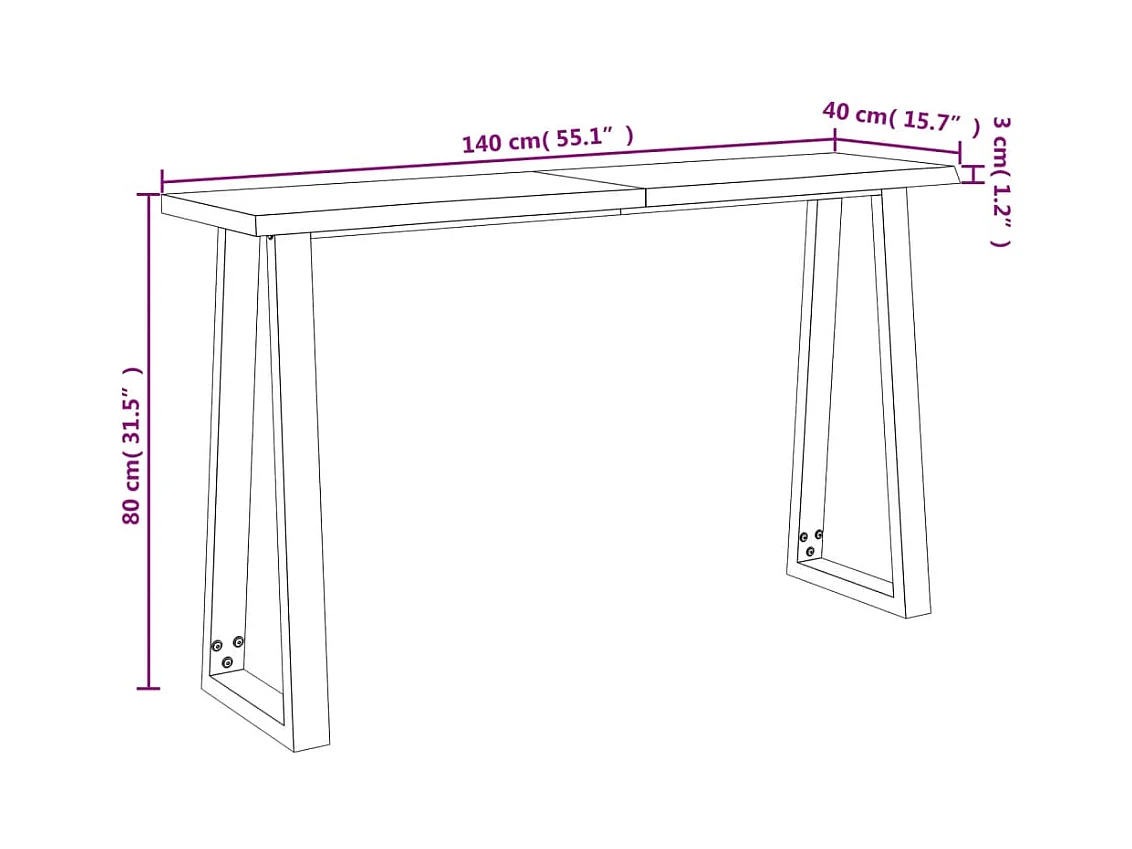 Mesa consola con borde vivo madera maciza acacia 140x40x80 cm