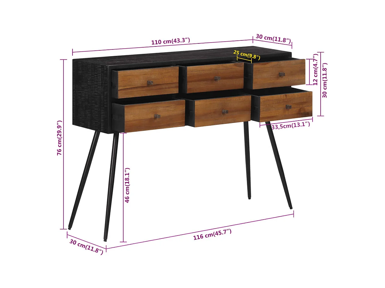 Mesa consola con cajones teca maciza recuperada 116x30x76 cm