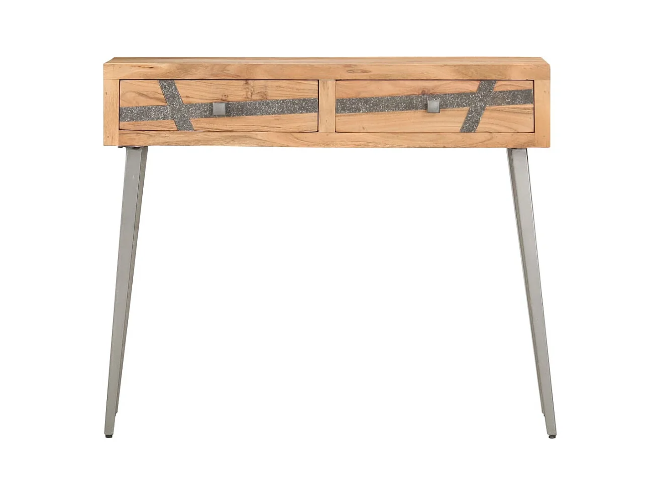 Consola de acacia y metal Etienne con almacenamiento - Estilo industrial