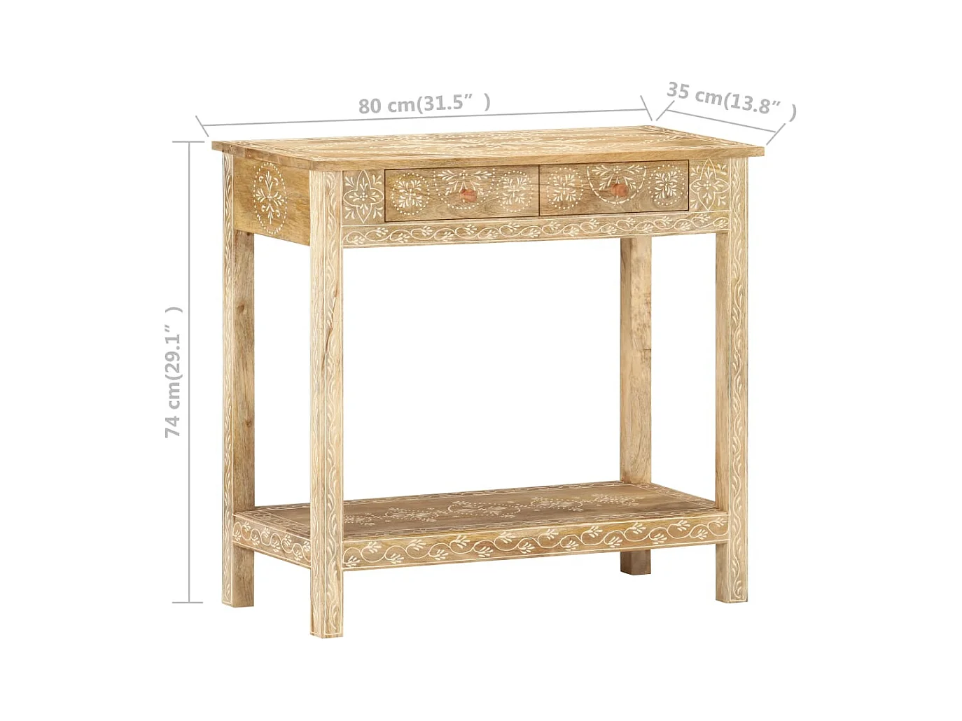 Mesa consola de madera maciza de mango 80x35x74 cm