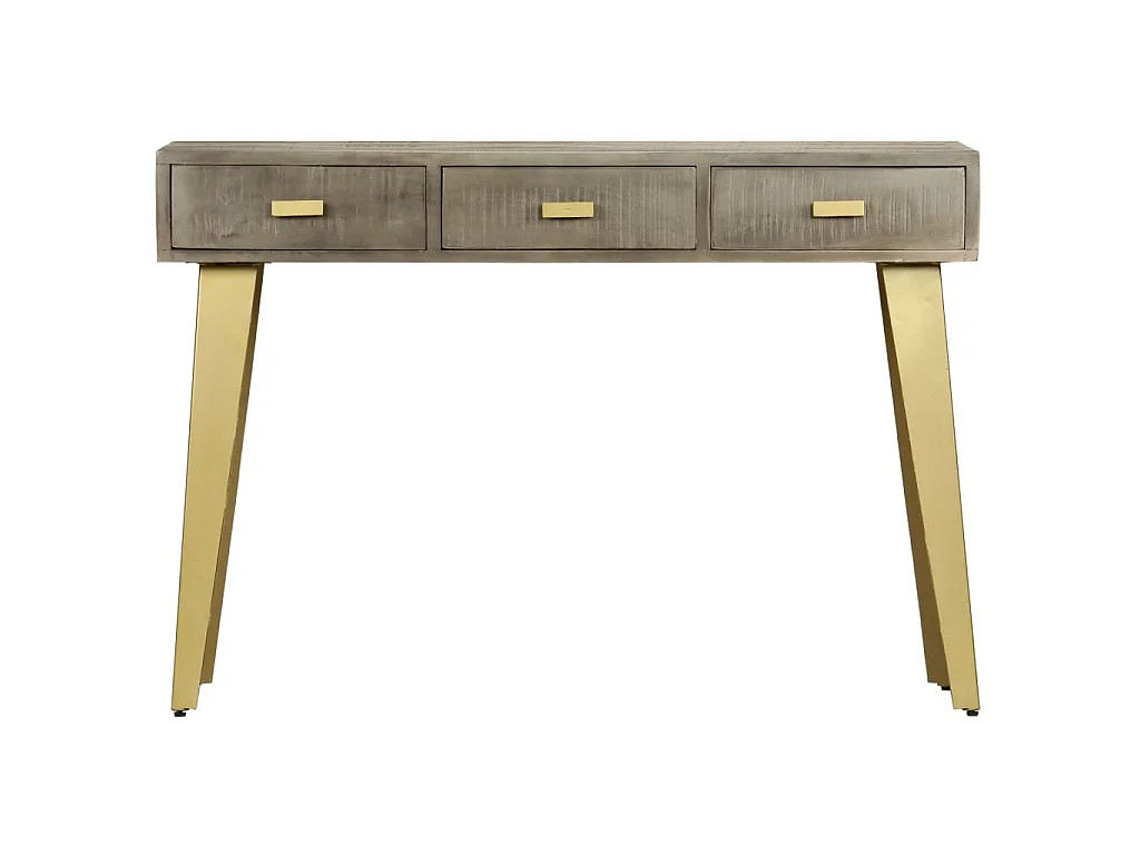 Mesa consola madera maciza de mango con latón gris 110x35x76 cm