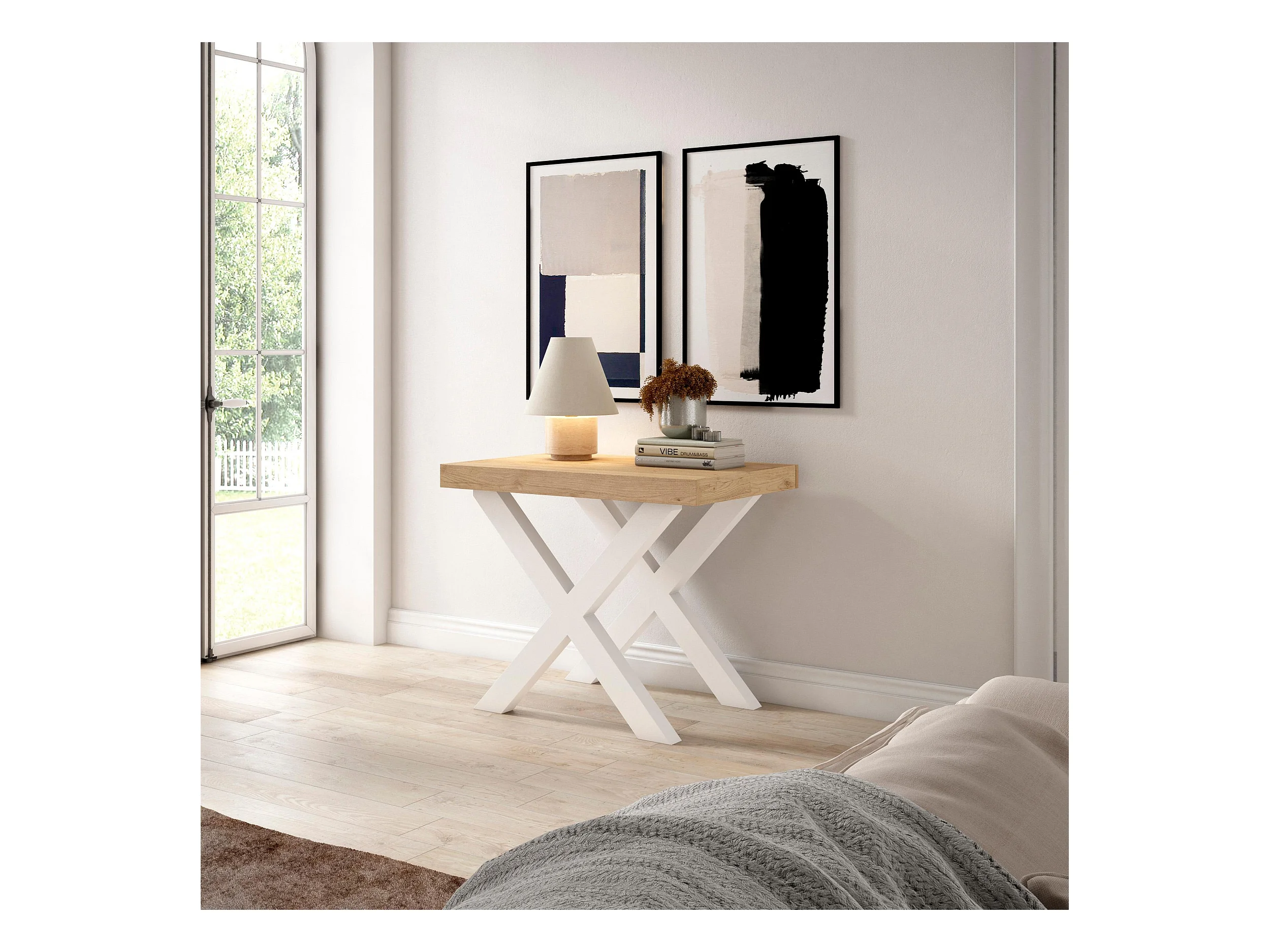 Mesa Consola extensible, 160x90x73cm, Para 8 comensales, Patas madera maciza, Roble
