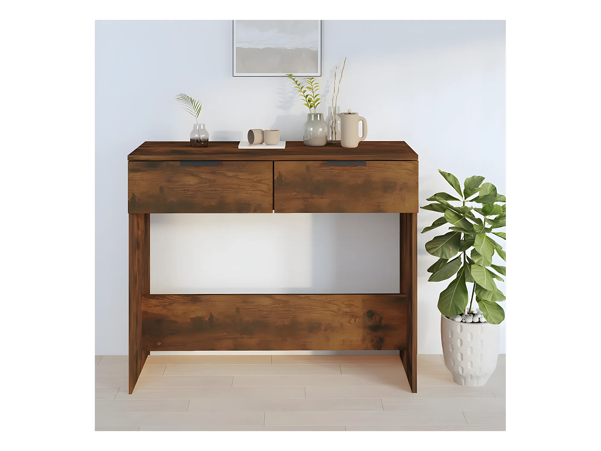 Mesa consola madera contrachapada roble ahumado 90x36x75 cm ES416054