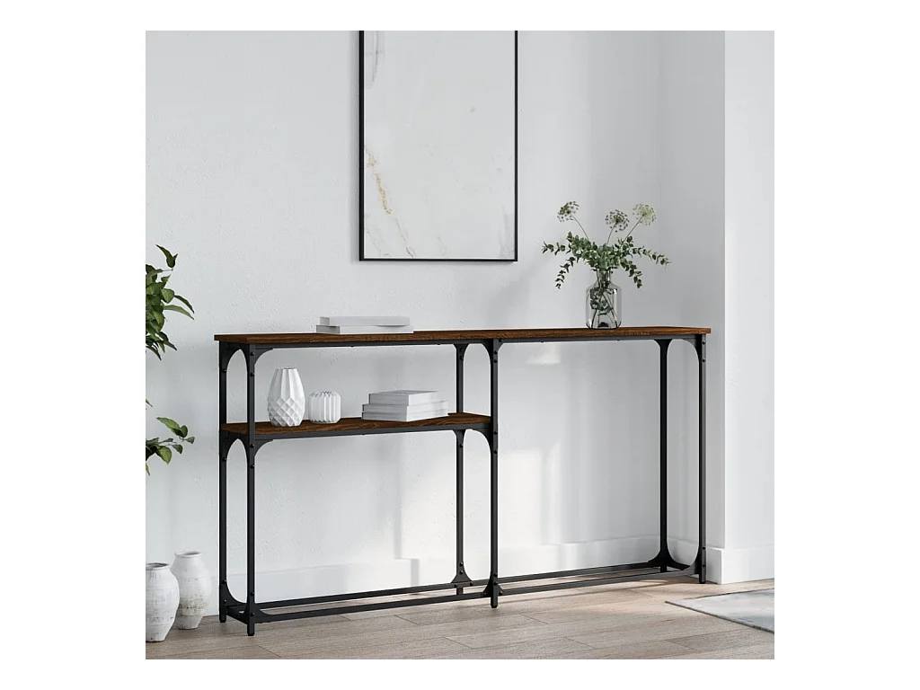 Mesa consola madera de ingeniería roble ahumado 145x22,5x75 cm ES711506