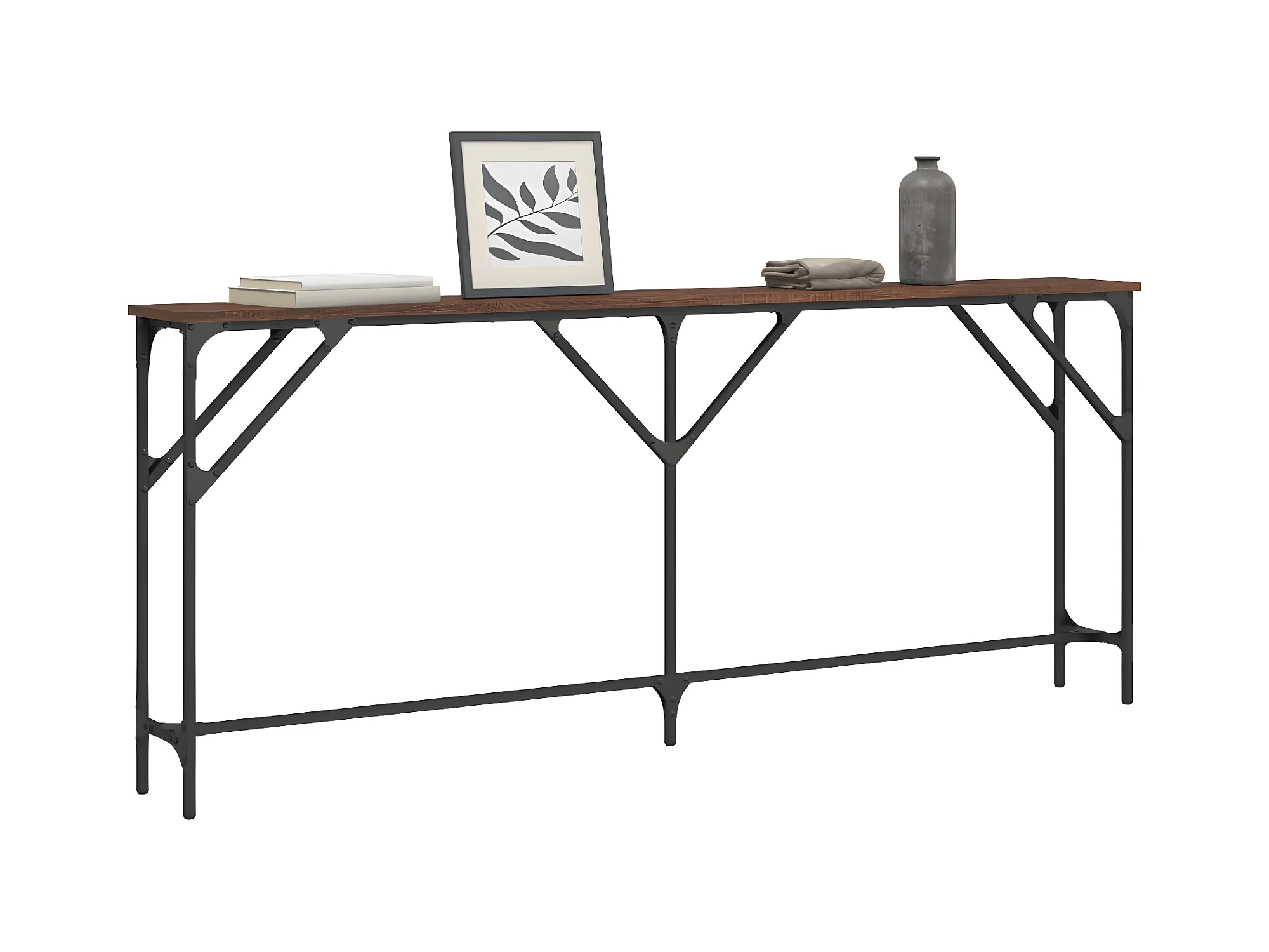 Mesa consola hierro madera ingeniería roble marrón 180x30x75 cm ES966529