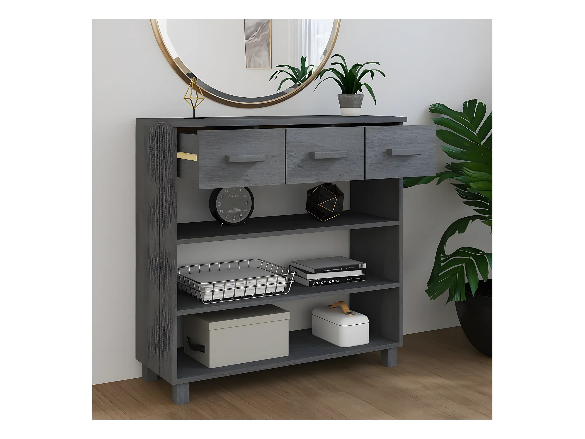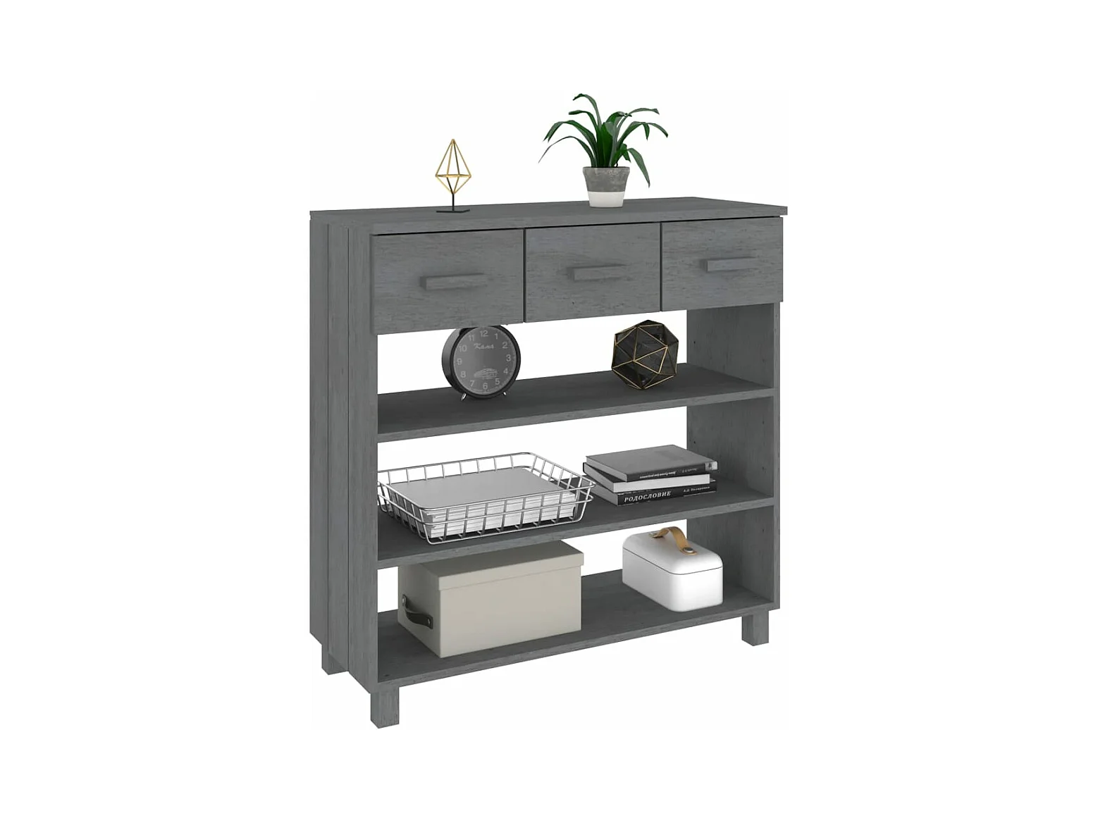 Mesa consola madera maciza de pino gris oscuro 90x35x90 cm ES505068